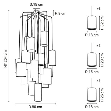 Cylindrical shades Made of French terry fabric, they give the lamp a unique charm, creating a delicate, diffused light with a subtle character. Textile strings and a matching metal roof add the lamp notes of modern design, combining tradition with modernity. This is not only lighting, but also a unique decorative element that will introduce a note of elegance and comfort to any room.