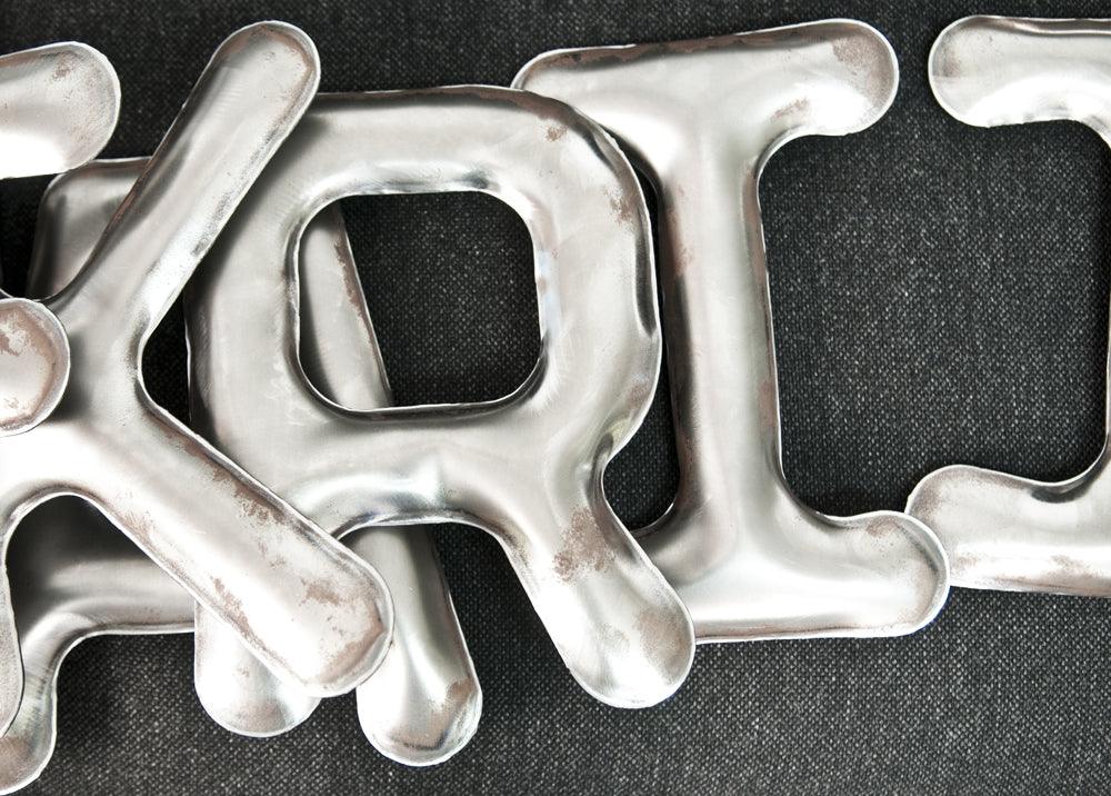 Each letter in the collection of decorative alphabet letters is carefully designed and crafted using FiDU technology, which allows for the shaping of metal into precise forms. This process involves the application of controlled loss of control to create organic and dynamic letters that catch the eye and express modernity.