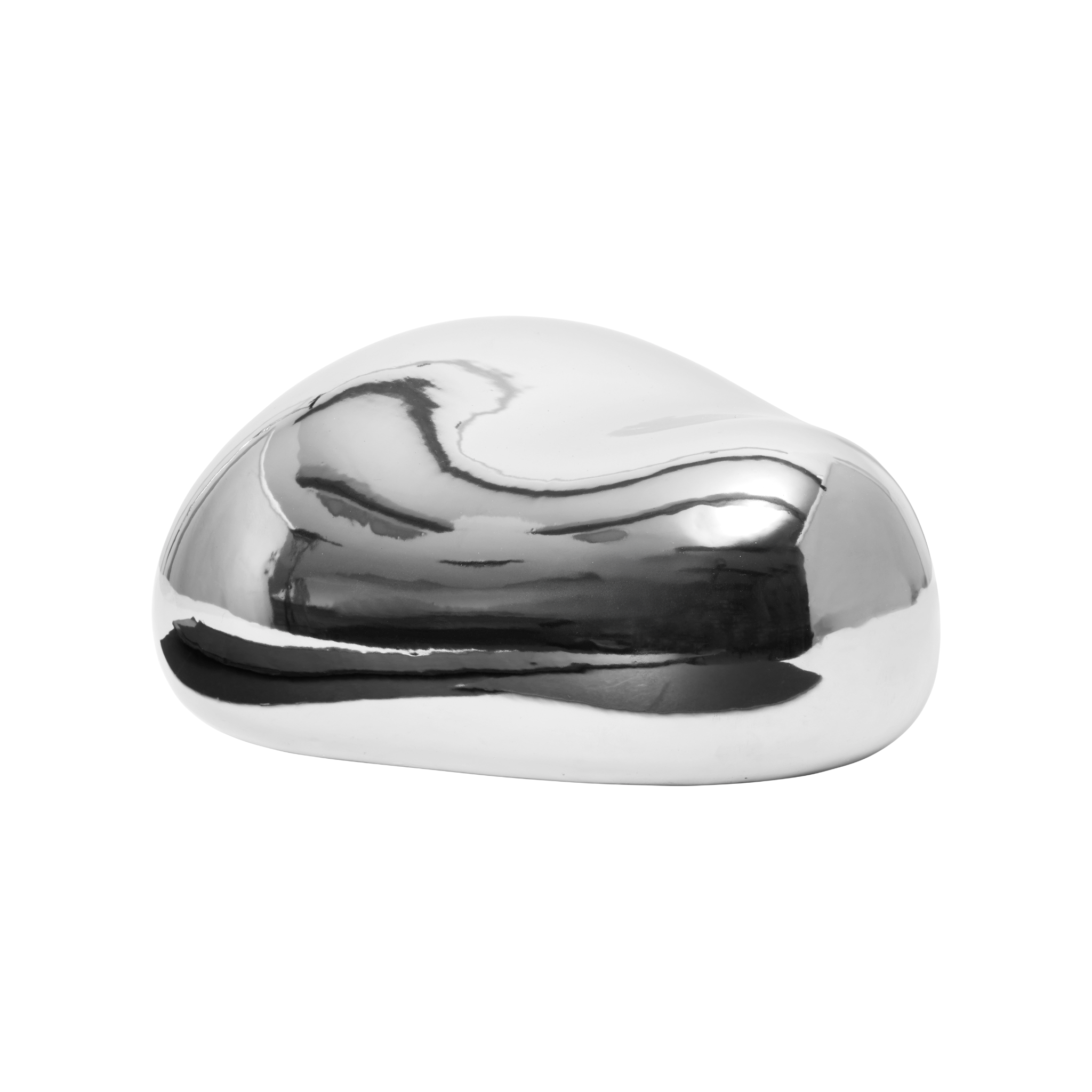 Decoration Bellure in silver is a sophisticated blend of modern form and natural inspiration. Its smooth, organic silhouette, inspired by the shapes of river stones, brings harmony, tranquility, and timeless elegance to the interior. The subtle sheen of the glazed surface beautifully reflects light, giving the decoration an noble character and highlighting its sculptural simplicity. Placed next to the Christmas tree, on a dresser, or on a windowsill, it will become a unique element of the arrangement that attracts the eye and adds an artistic expression to the interior.