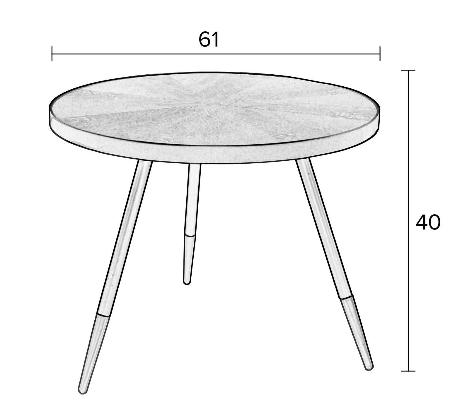 The table delights with its golden finish on the top and legs, giving it a luxurious look. The wide, round top placed on three legs ensures stability while also adding lightness to the table. Perfect for a spacious living room, the coffee table Denise is a proposal for those who appreciate unique solutions that will impress for many years to come.