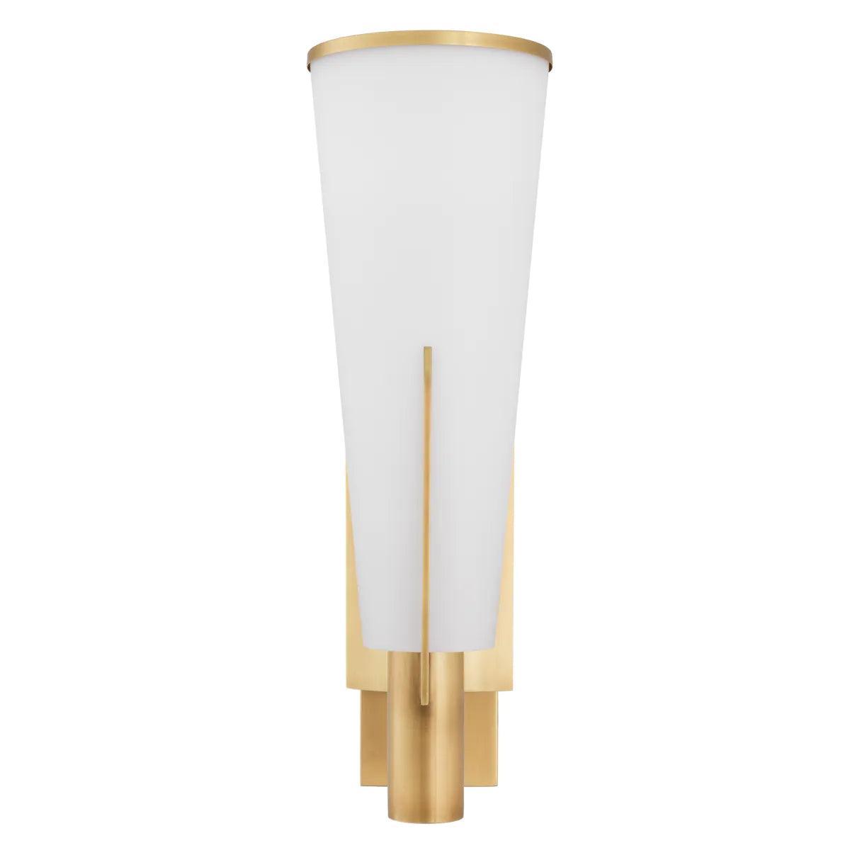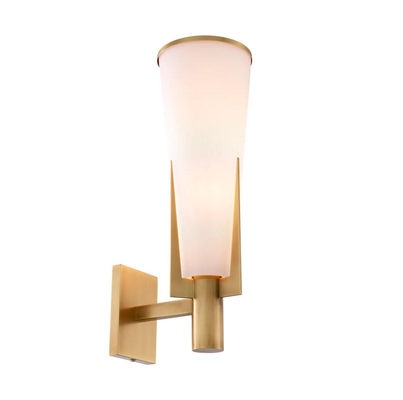 The unique conical shade, made of white glass with an elegant brass trim, adds a modern character to the Dino lamp, inspired by mid-century style. The combination of classic elements and bold architectural details makes this lamp not just a source of light, but also a unique piece of art that enhances the character of your space. Dino is an incredibly stylish addition that will bring a touch of refined charm to any interior.