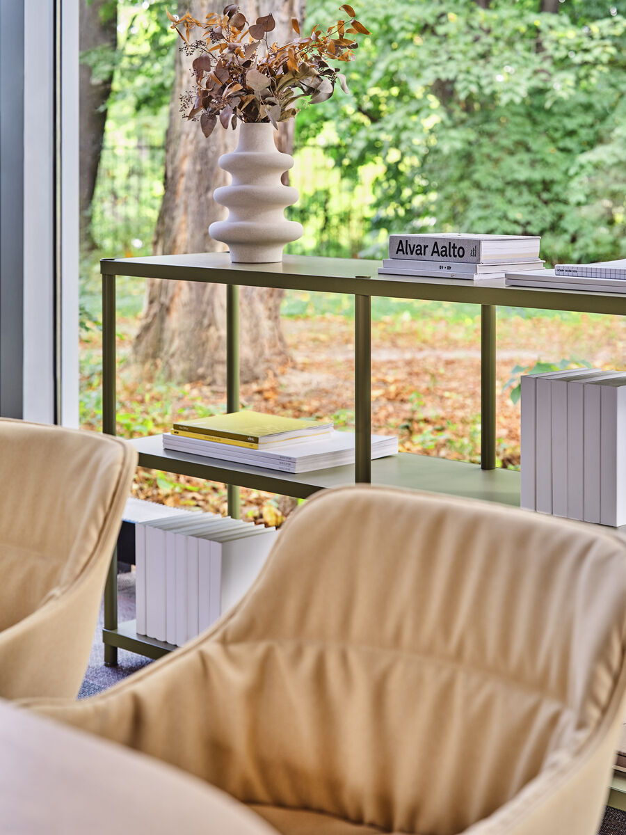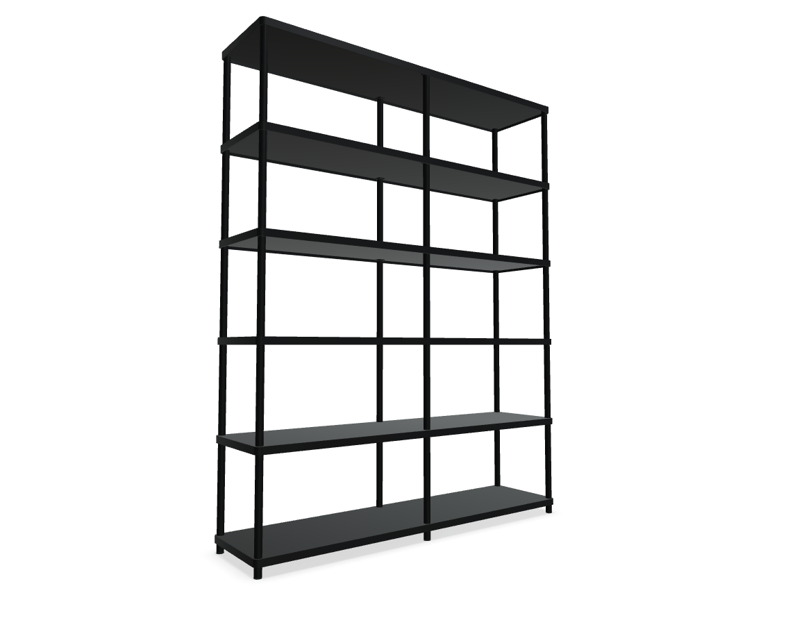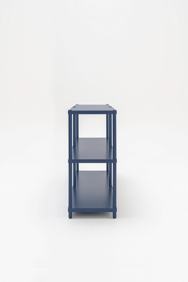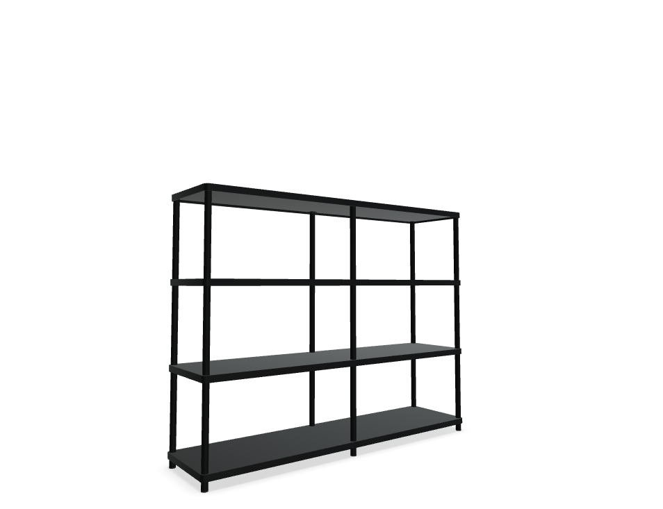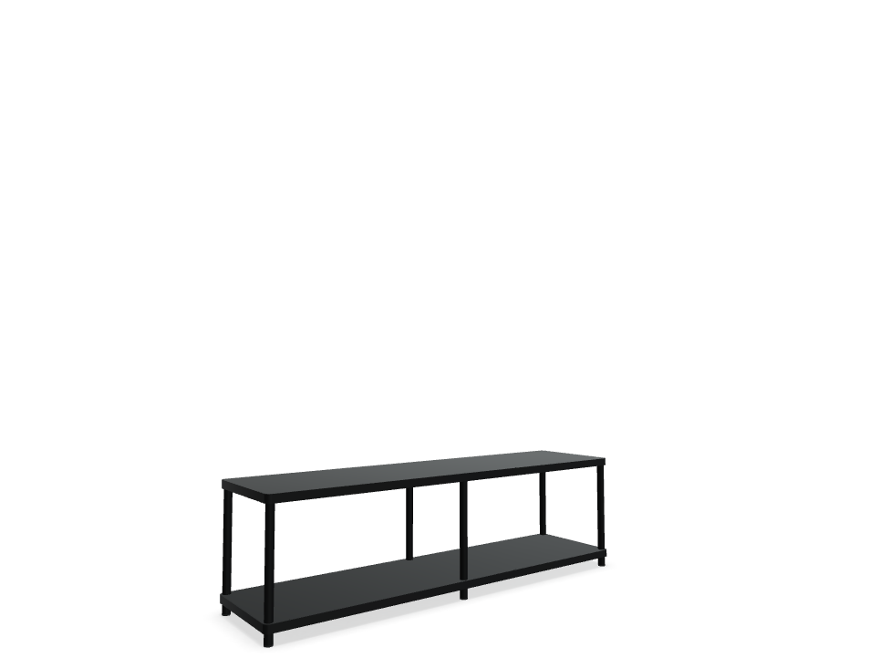 Double shelf Stilt is a functional solution, designed to organize space in offices, hotels and apartments. Thanks to the compact form, it is perfect for small rooms, and the modular design allows for any configurations tailored to the individual needs of the user. A stylish metal frame in matte shades, combined with plate shelves, creates an aesthetic, monochrome whole.