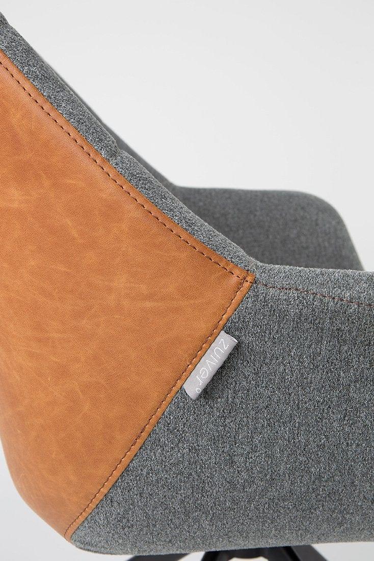 The sturdy frame is made of metal. The living room armchair Doulton features a seat upholstered in polyester fabric, enhanced with eco-leather inserts. The combination of bronze and gray highlights the vintage style design and looks incredibly interesting.