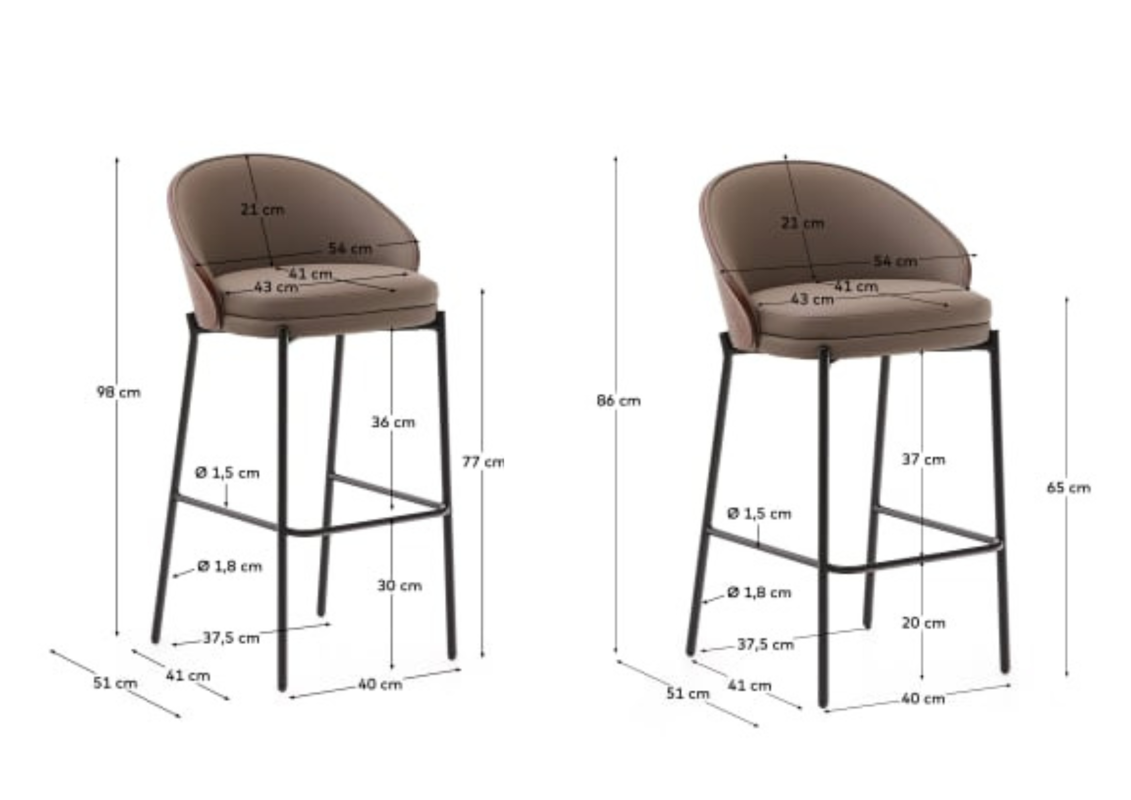 Bar Eama is a combination of classics and modernity. The backrest made of ash veneer in a nut finish adds warmth and elegance. The solid metal structure painted black ensures stability and durability of the chair.