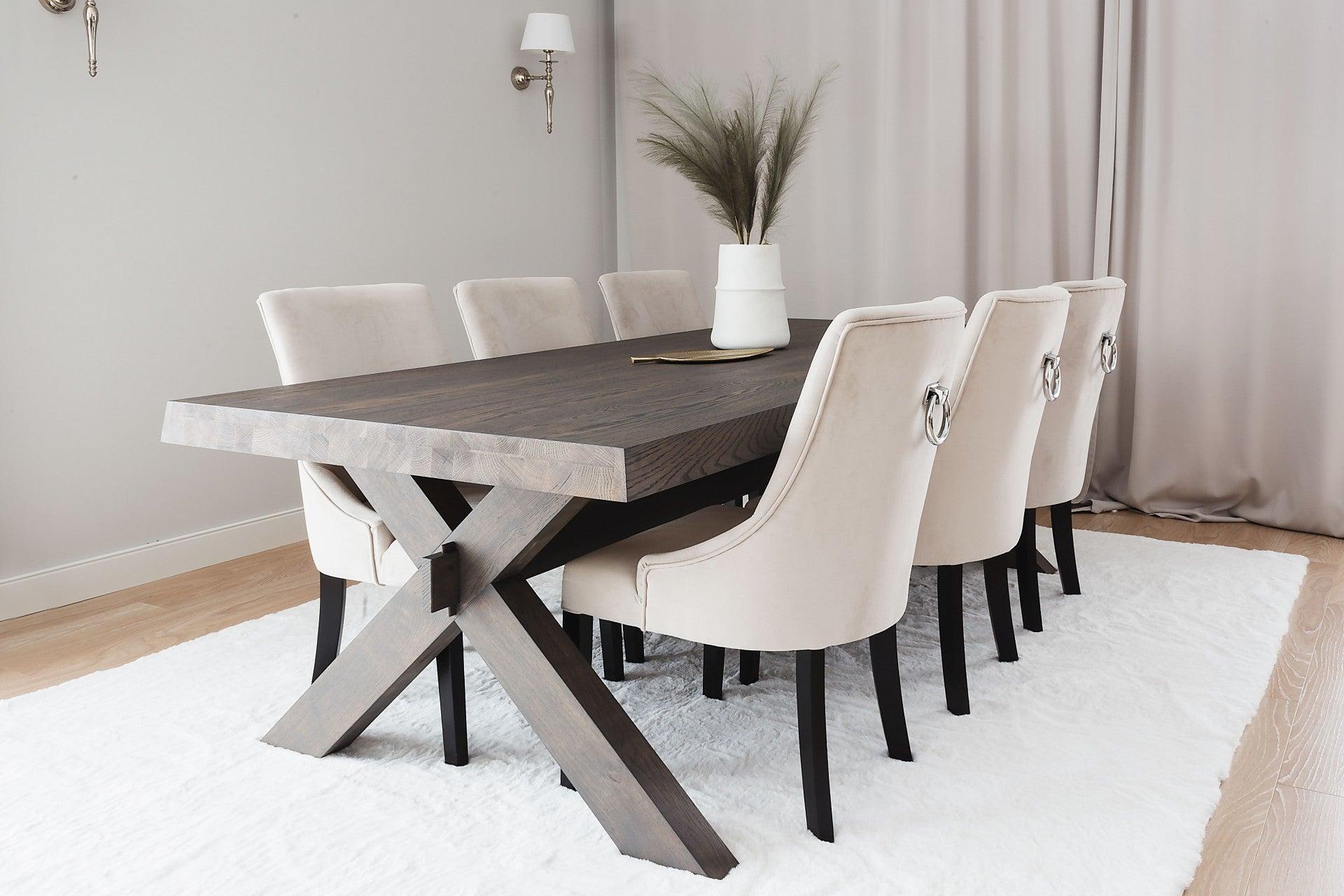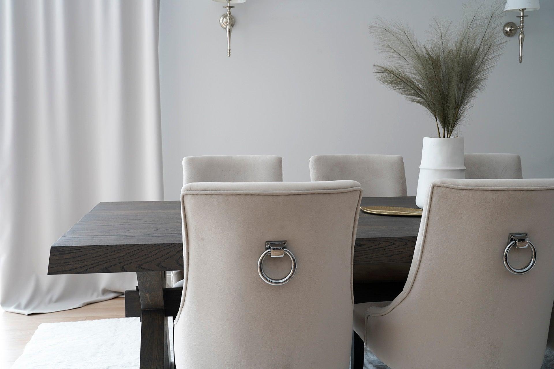 Krzesło HELDA beżowy szenil z drewnianą podstawą La Forma    Eye on Design