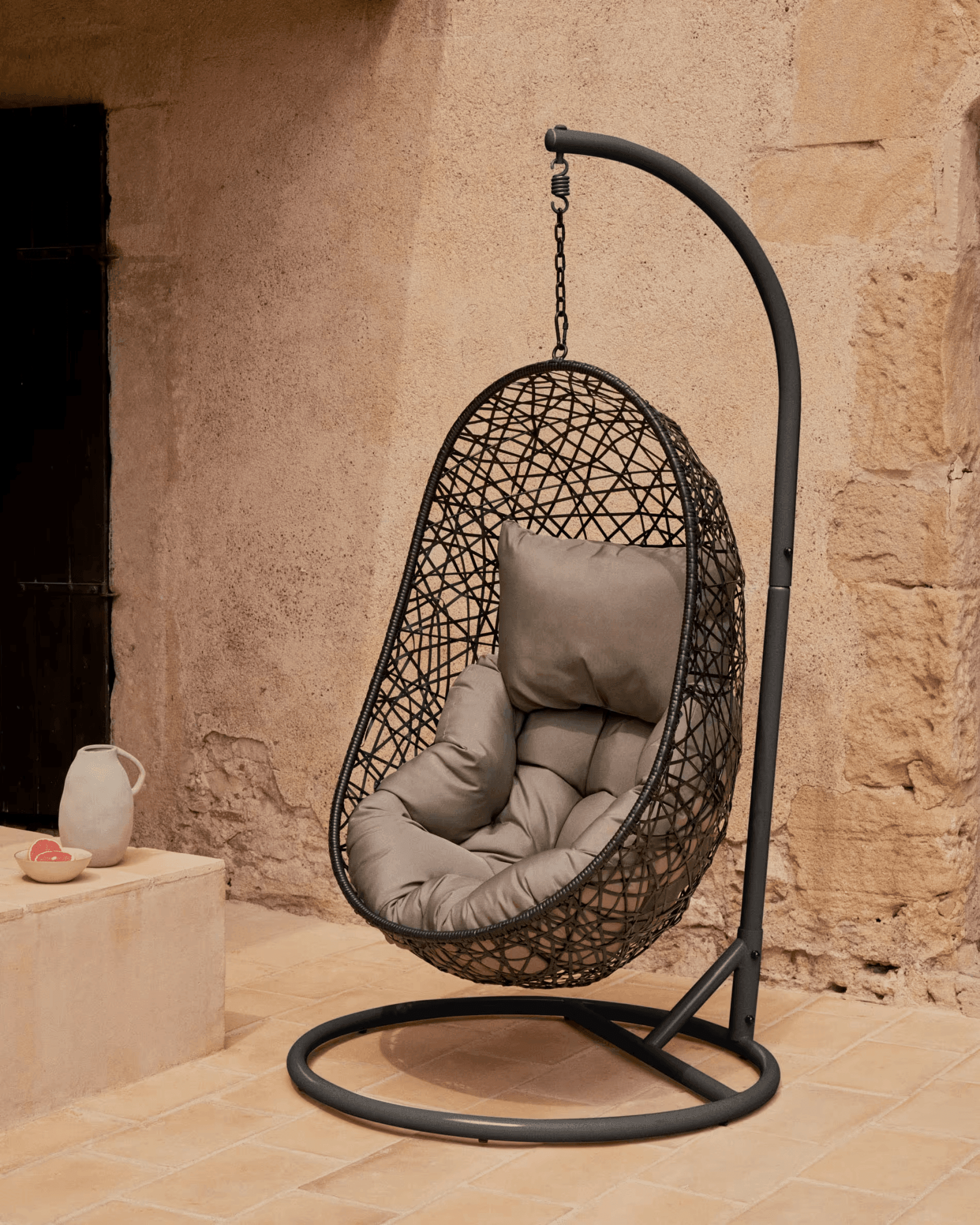 Fotel wiszący FLORINA ciemnoszary z ciemnozieloną podstawą La Forma    Eye on Design
