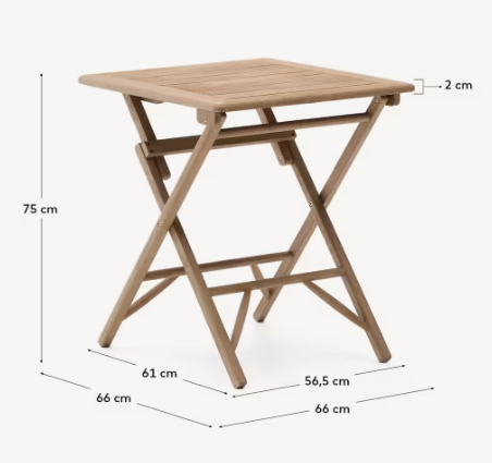 Dandara is folding table, which combines the natural beauty of solid acacia wood with a durable steel rust -resistant structure. Thanks to its folding design, it is an ideal choice for small spaces, such as balconies, terraces or patio, ensuring convenience of use and easy storage.