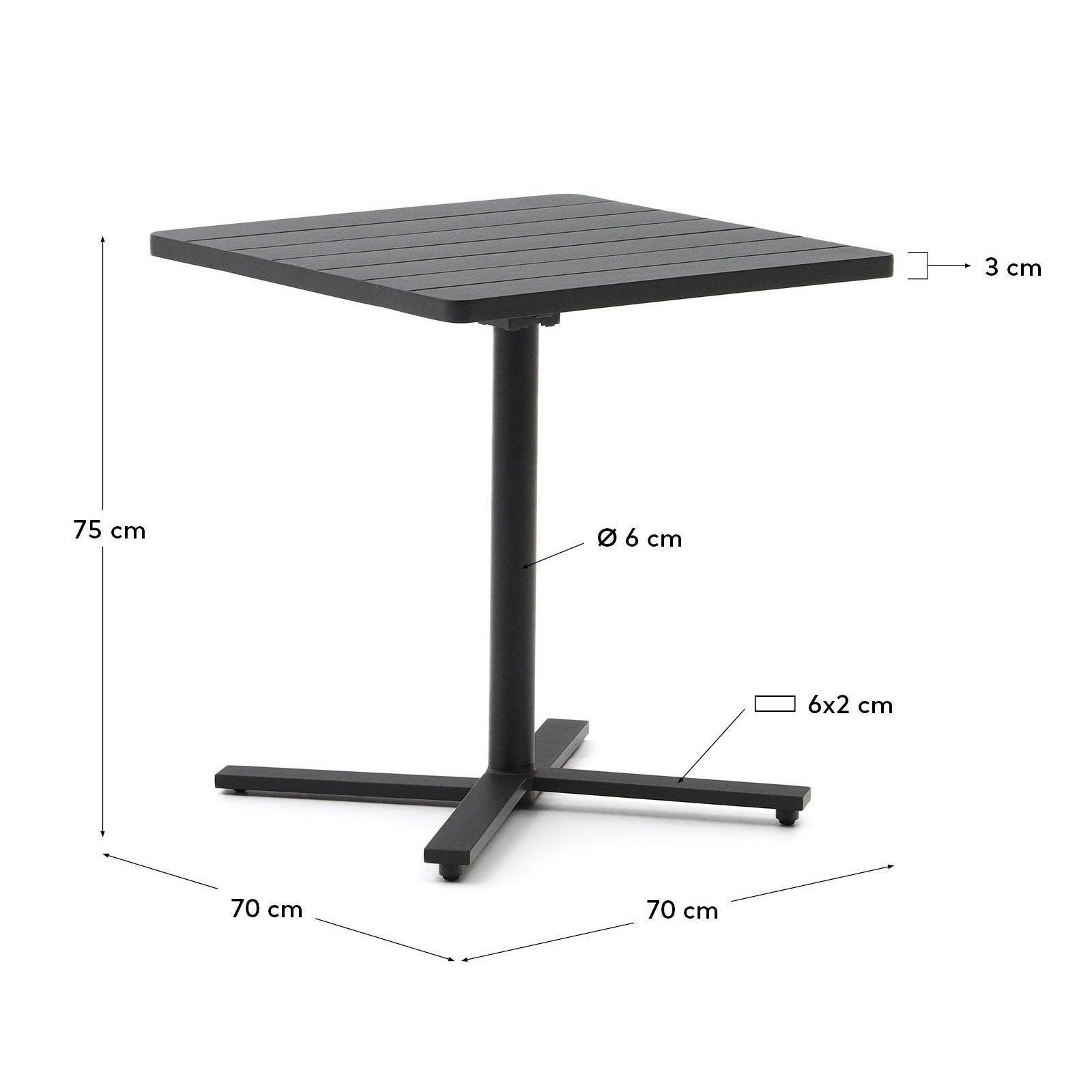 Its folding design allows for optimal use of space, minimizing the occupied place during storage. Thanks to this, you can freely create your space, even in a limited environment. Black table From the Torretta collection it is not only a practical solution, but also a word of personal style and taste. Made of durable aluminum, it ensures solidity and stability during use, while adding elegance to your surroundings.