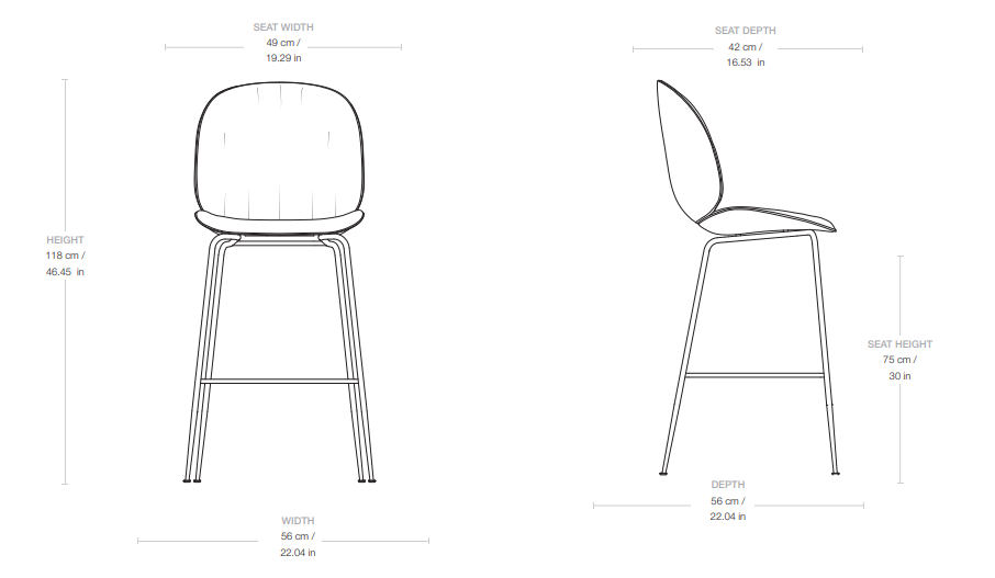 BEETLE SOFT upholstered bar stool with walnut wood and black chrome base