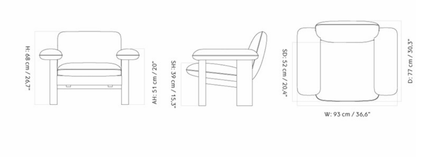 Chair Brasilia is a combination of modern form with Scandinavian minimalism and Brazilian modernism. Its characteristic low profile, wide armrests, and solid walnut base give it elegance and ensure exceptional durability. The upholstered seat and backrest made of high-quality fabric guarantee comfort and introduce a cozy atmosphere to the interior.
