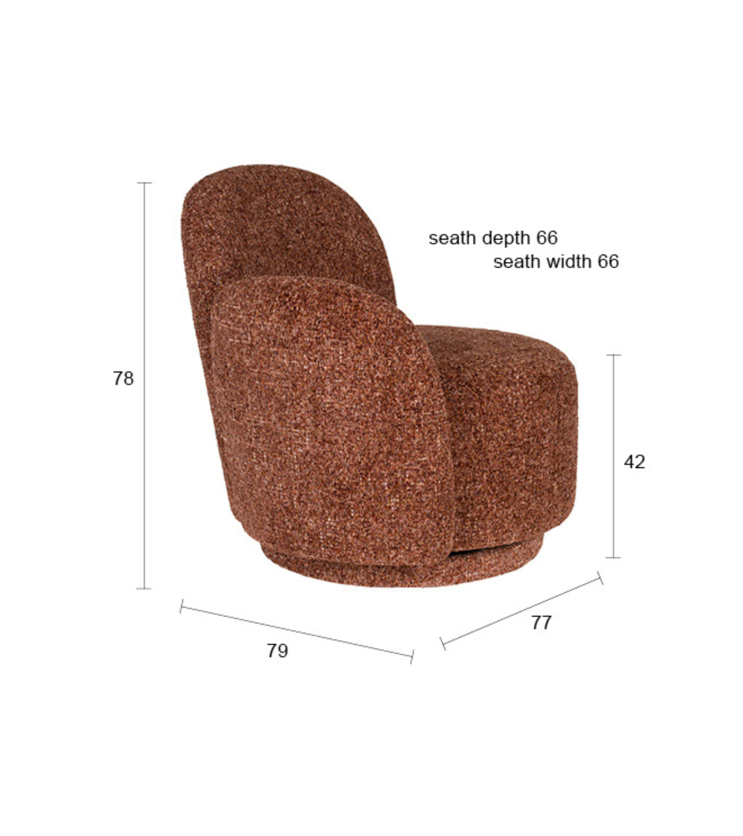ROSE swivel armchair in burgundy mélange