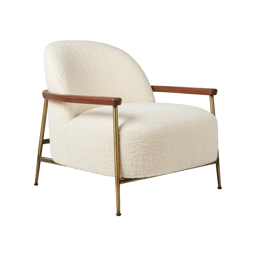 SEJOUR upholstered armchair with a brass base