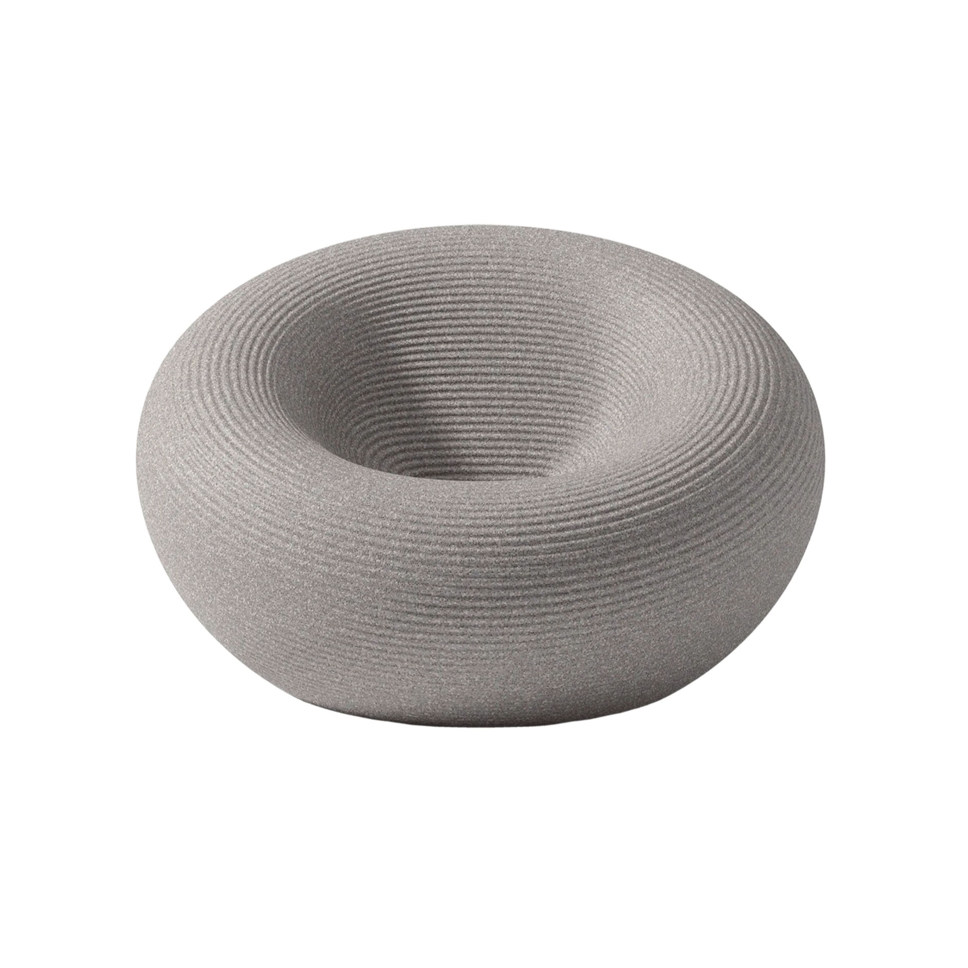 Chair Nami is the result of rotating the section on a diagonal axis, giving it a perfectly round shape. Along the surface of the chair run molded elements that expand from the center to the edges in the form of a sequence of concentric rings. In the central part of the chair there is a channel that allows for water drainage. Nami is available in six colors, three of which have a solid shade, while the other three are created from recycled materials, combining 2-3 different tones of colors.