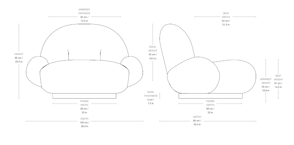 A chair designed for relaxation in luxurious conditions – without aesthetic compromises. The soft silhouette and contoured armrests create a feeling of being enveloped and supported, while the option to customize the fabric allows it to fit seamlessly into any outdoor decor style.