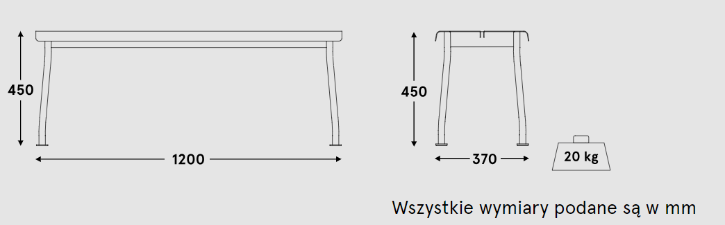 Leg pads prevent the furniture from sinking into soft ground. The matte finish paint protects against external factors, and the minimalist design in a harmonious color scheme allows for easy matching of the bench with the rest of the collection. With a height of 450 mm, it is perfect for coffee tables.