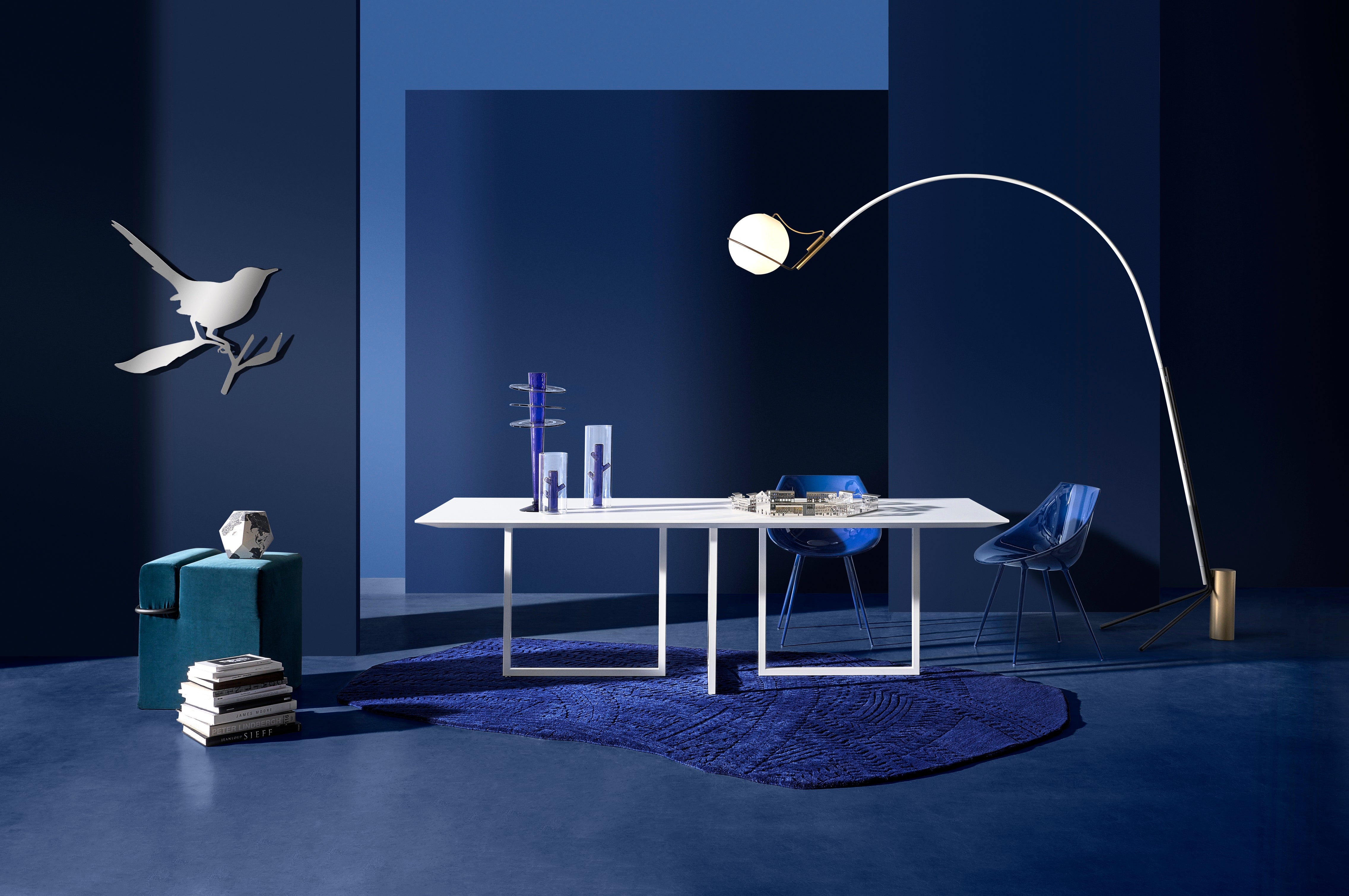 Table Gazelle is a modern and architectural proposal designed by Studio Park Associati, which surprises with its form and game of balance. At first glance, it seems that the massive top floats in the air, supported only on two constructions with an irregular system. These geometric frames - made of painted, steel profile - are set to each other both in parallel and perpendicular, which gives the furniture a dynamic character.