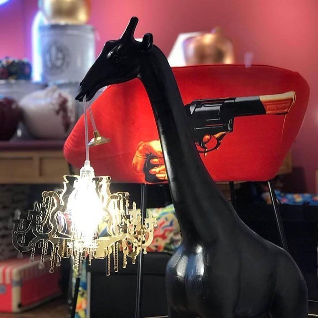 A spectacular lamp designed by Marcantonio, which will uniquely enliven any living room, bedroom, or elegant restaurant. The majestic giraffe holds a chandelier in the style of Maria Teresa in a miniature version. It is the perfect blend of great design and functionality. This stunning lamp is a small work of art that will not only impress all your guests but also lift your spirits every time you look at it. Made from recycled materials.