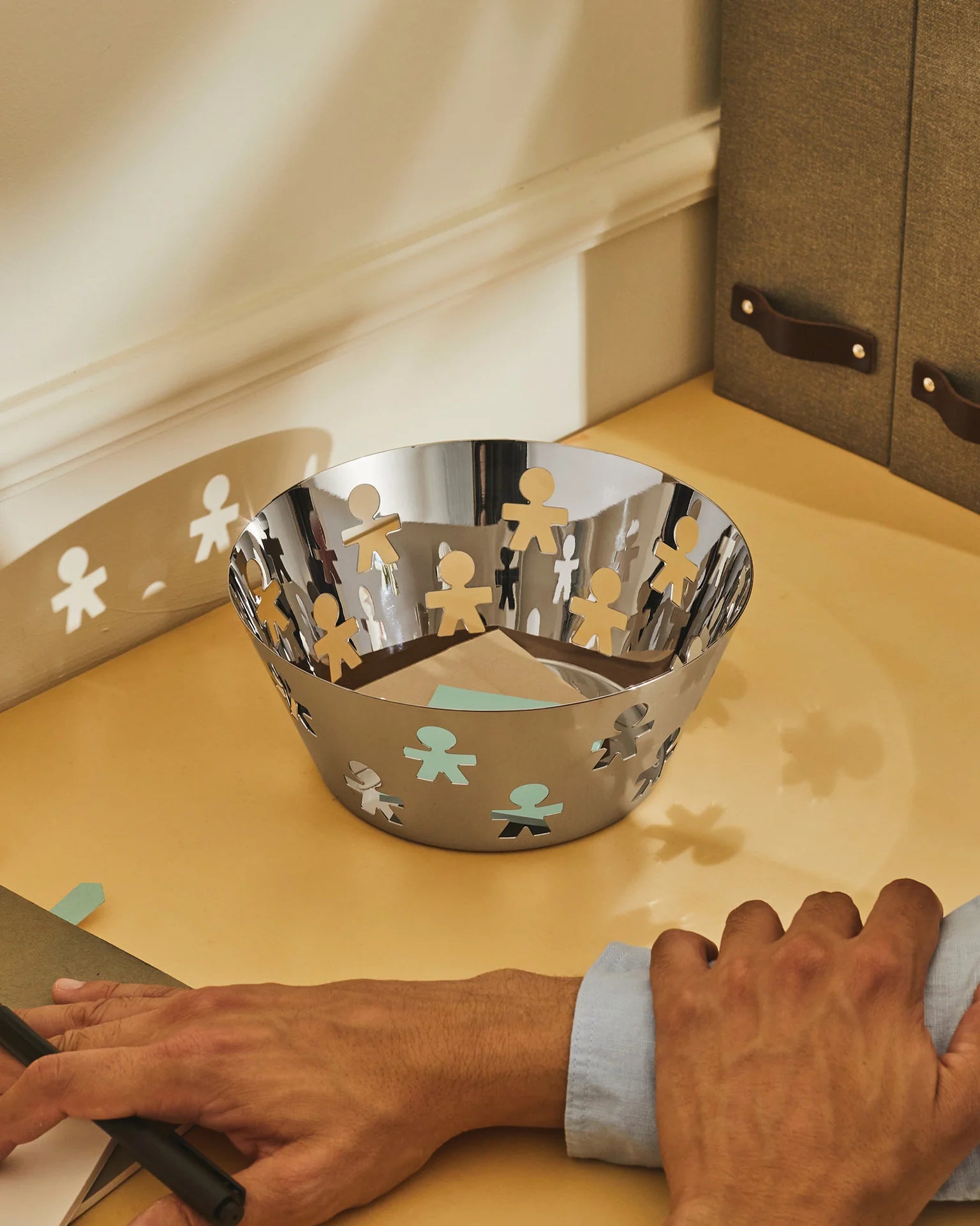 Basket Girotondo, created by the duo of designers Stefano Giovannoni and Guido Venturini, known as King-Kong, is a unique item with the motif of cut paper people. These funny characters have become an icon of mirror, polished projects, bringing the concept of "affective codes" to the design, which arouse positive emotions. Initially, the motif of "standing people" decorated trays and baskets, but quickly gained popularity and began to appear on many other items, not only kitchen. The Girotondo basket combines functionality with a unique style, becoming both a practical and decorative element of any interior.