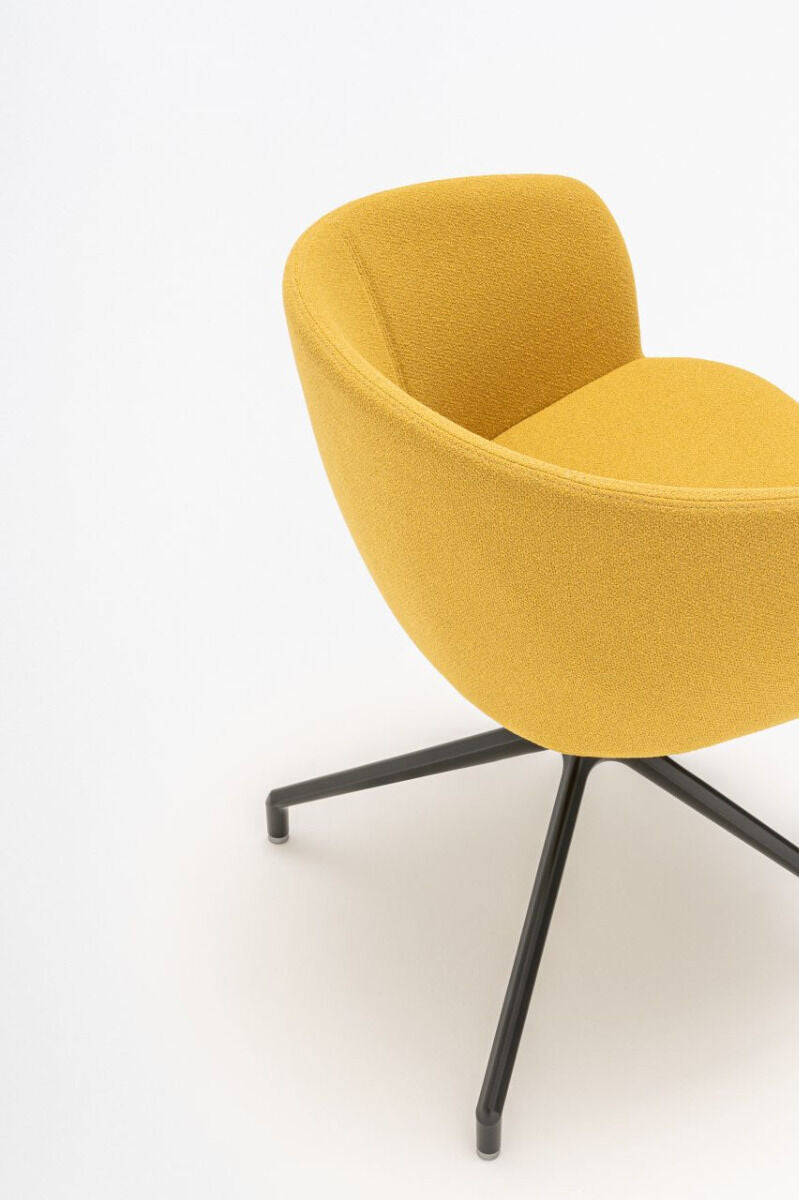 Swivel chair Grace with an aluminum base is an ideal solution for modern office, conference and public spaces. The elegant upholstered seat inspired by club chairs combines comfort with aesthetics, and the cast aluminum base, available with the option of wheels, increases the mobility of the user, which makes it easier to move the chair. The combination of classic form and modern materials makes it chair Grace perfectly fits into demanding interiors, while ensuring reliability and comfort.