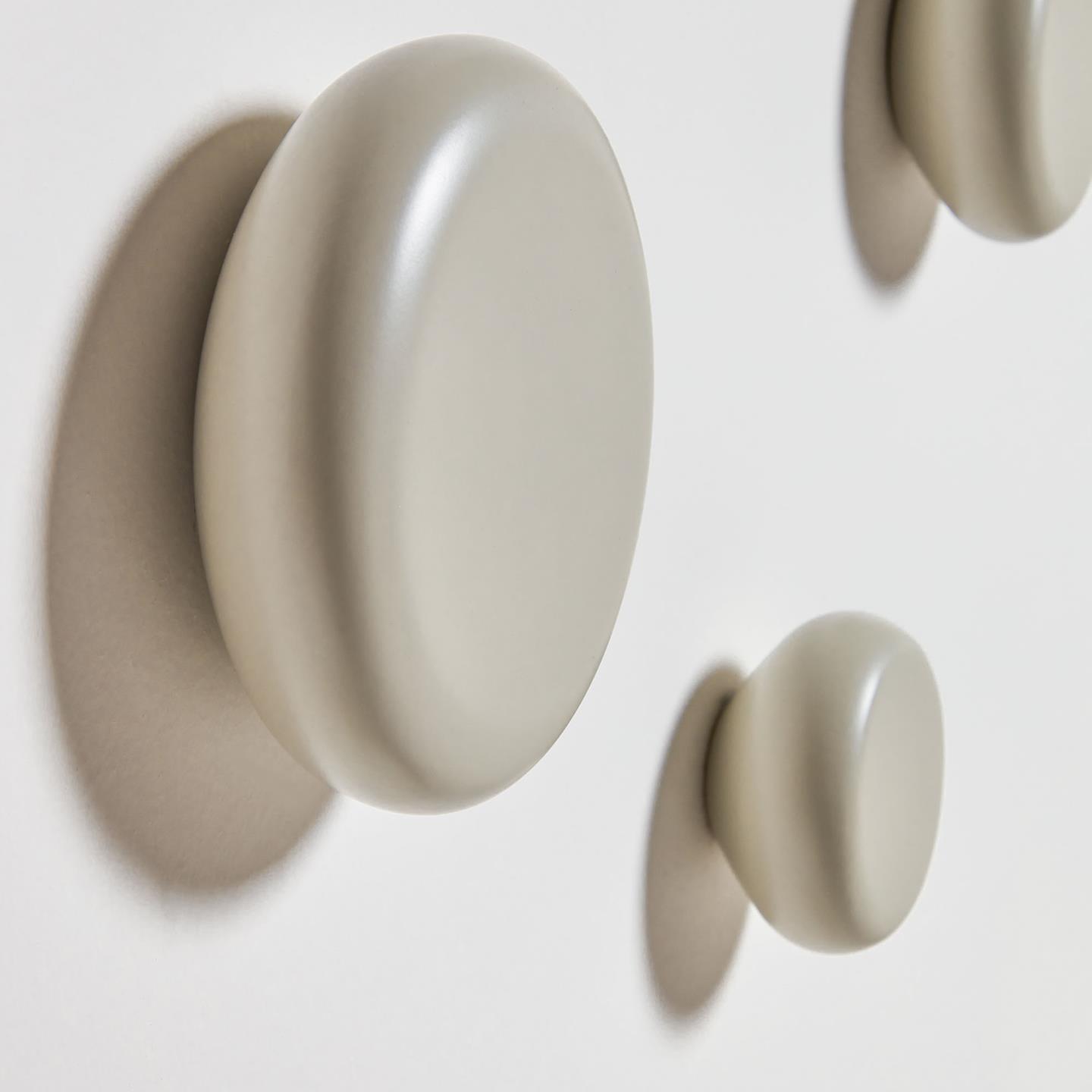 A set of three round hangers of solid beech wood in various sizes is an organic design of the Kave Home team, which is produced locally. It contains plugins matching both bricks and plasterboard.
