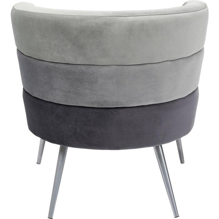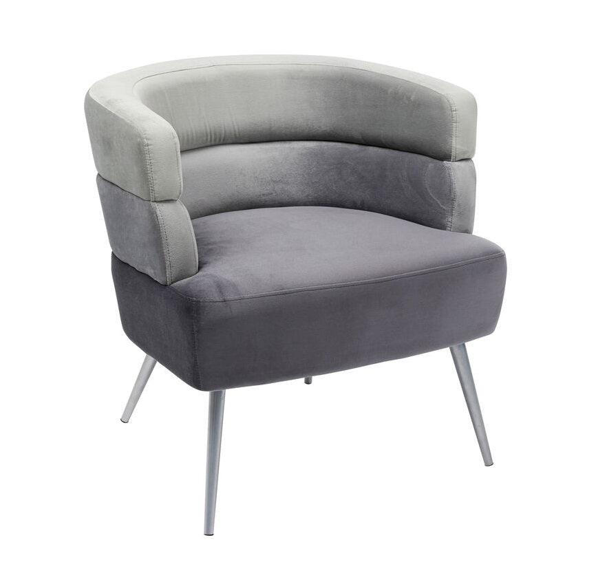 Gray sandwich armchair with a silver base