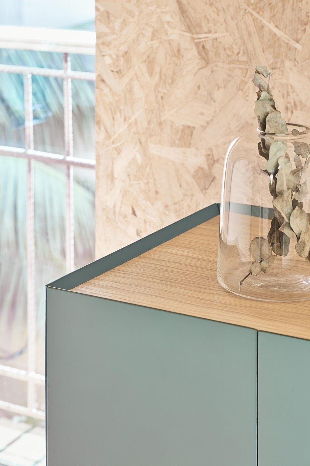 The dresser is made from oak veneer. As for the construction, the fronts meet the top at an angle .45º. This remarkable precision ensures compatibility and consistency among all parts. dressers. The extravagant green color will bring a breath of fresh air to your interior.