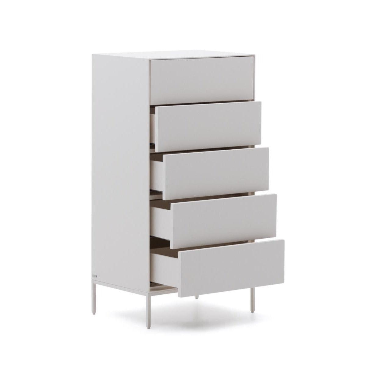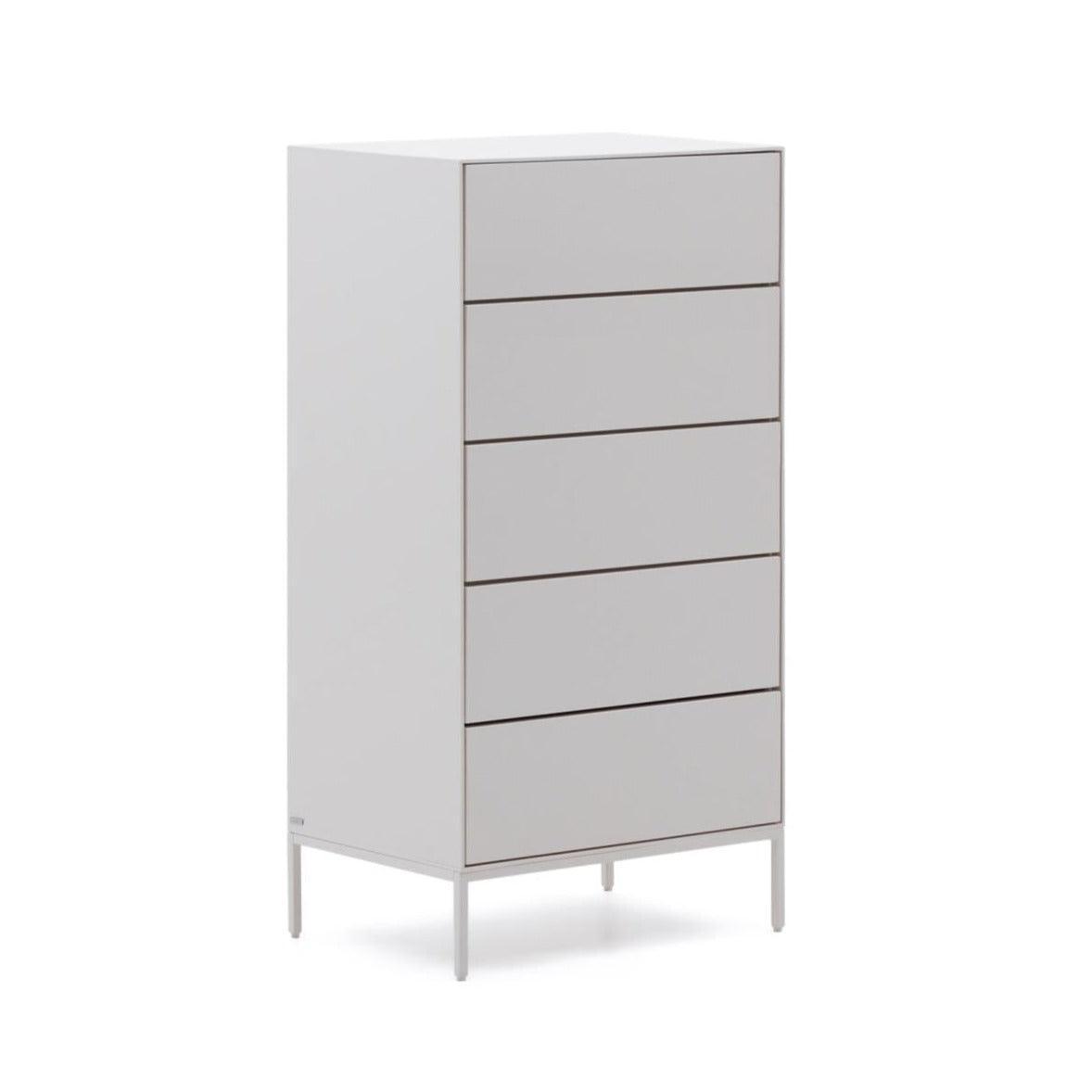 Tall chest of drawers Vedrana, created by the experienced design team at La Forma, represents a perfect harmony between white lacquer and steel, creating a unique combination of functionality and aesthetics. This unique blend of materials makes Vedrana perfectly suited for various types of homes and design styles, highlighting their elegance and modernity.
