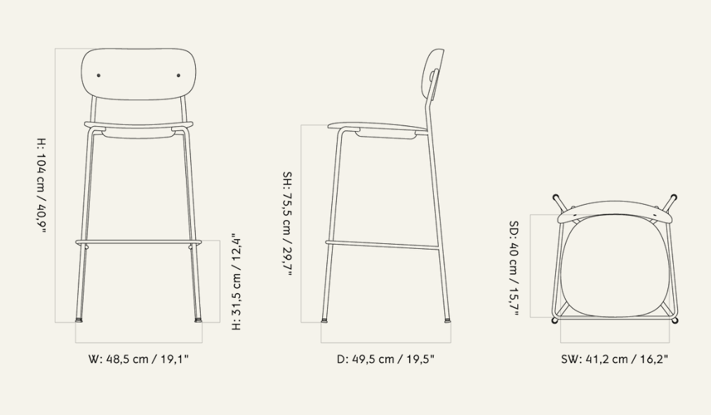 The slim yet stable construction of the hokera Co is complemented by a practical footrest that enhances seating comfort. The piece impresses with its precision craftsmanship and minimalist character, making it perfect for both home dining areas and commercial spaces – from elegant bars to stylish offices.