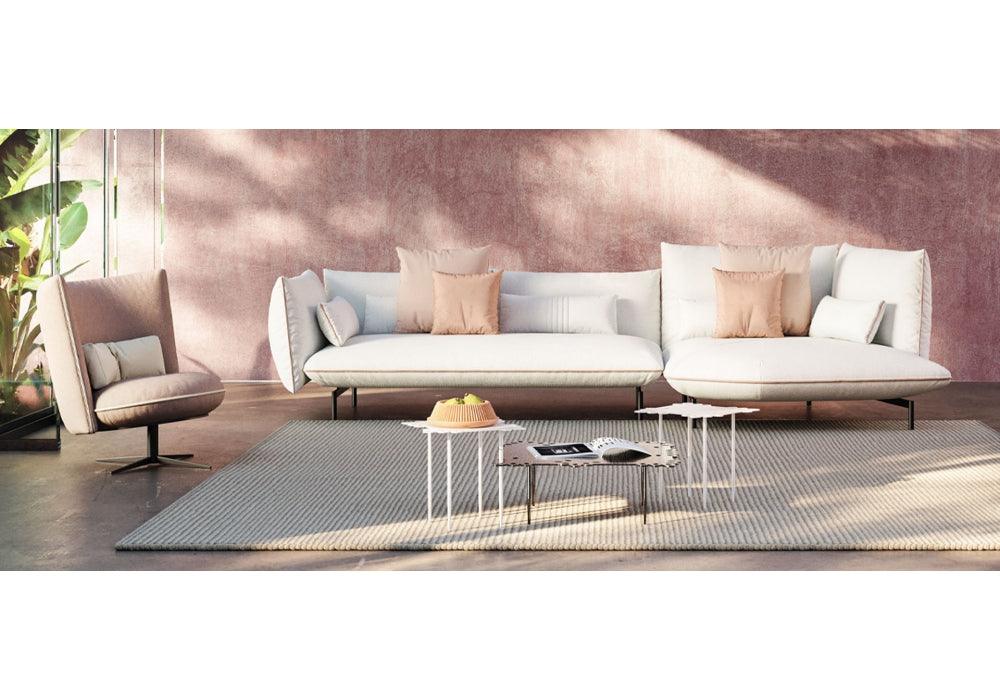 Ice Breaker Corner Sofa is an elegant and unique sofa, made of soft velvet in delicate, pastel shades that blend harmoniously. Its light design and sophisticated stance pay tribute to the continuous crossing of the boundaries of time and fashion.