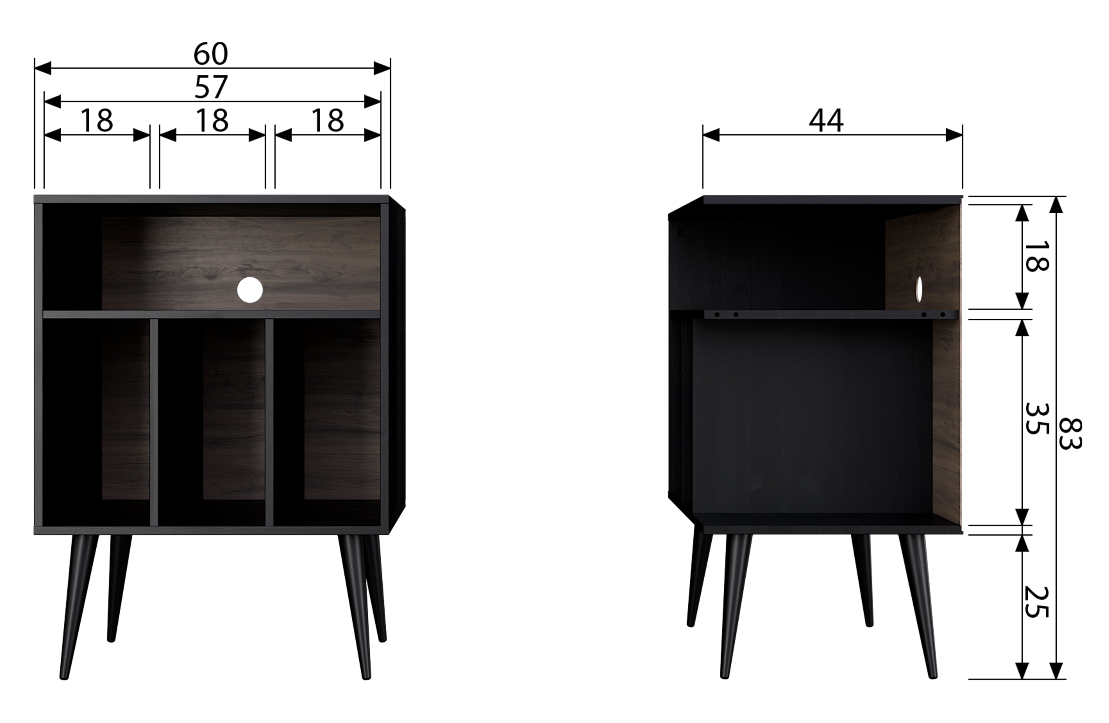 Cabinet James in a deep black color is a model designed for RTV. Its simple lines and timeless black make it suitable for any interior, from vintage to modern.
