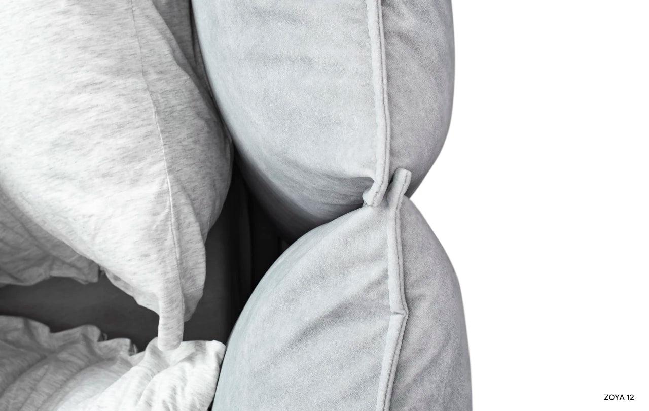 We invite you to discover a designer masterpiece in the form of the Joy bed – a product that stands out with its extraordinary shape and originality. The exquisite cushions with decorative ruffles, exuding subtle charm, are harmoniously supported by solid metal structural elements, creating a stunning whole. The details of this exceptional Joy bed make it a focal point in any arrangement, drawing the eye and adding a unique character to every bedroom.