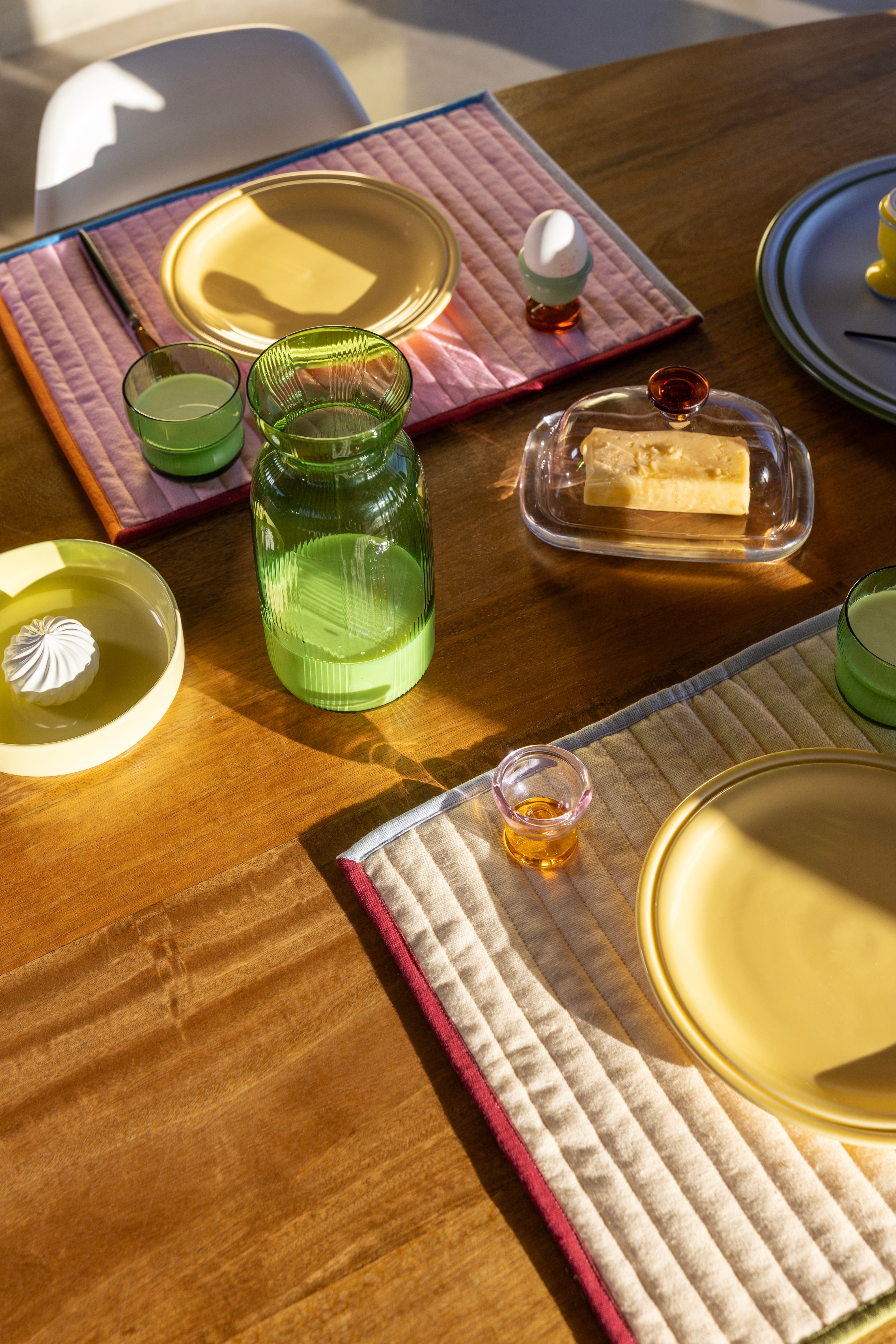 The Circus Carafe adds a colorful accent to your table. Its curved shape and vertical stripes inspired by a circus tent pattern make the carafe eye-catching and give every meal a unique character. The carafe pairs perfectly with the glasses from the collection, creating a cohesive and vibrant table setting.