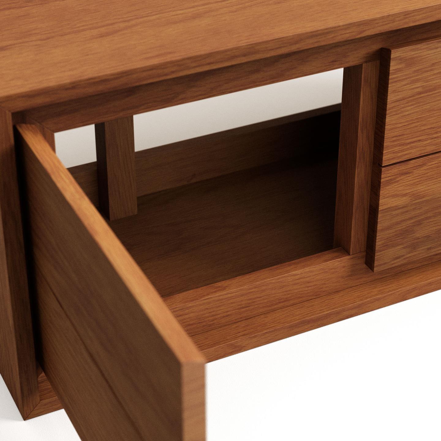Mango wood + travertine, lacquered finish