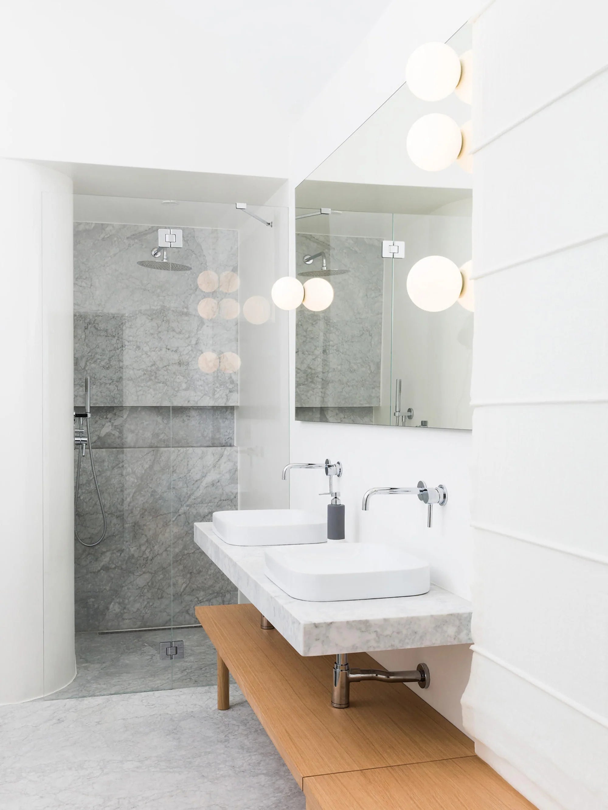 Wall lamp Dioscuri is an example of pure, timeless form that has become an icon of global design. The simple, geometric sphere made of acid-etched blown glass ensures even light distribution, creating a harmonious and atmospheric ambiance in any interior. With high-quality materials and perfect craftsmanship, the lamp combines elegance, functionality, and durability. Selected variants with diameters of 25, 35, and 42 cm are additionally adapted for outdoor use, making Dioscuri a versatile solution for many spaces.
