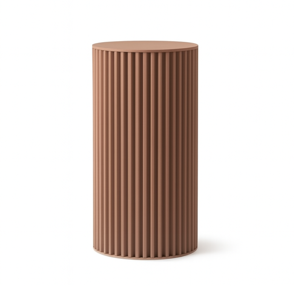 Made of aluminum and coated with an innovative eco-friendly finish called Corkcrete – a combination of natural cork and water-based resin – it is suitable for both indoor and outdoor use. The column is available in three colors: beige, gray, and taupe. Herclino works beautifully as a stylish pedestal for plants, sculptures, or lamps, as well as a designer side table – perfect for the living room, hallway, garden, or commercial spaces.