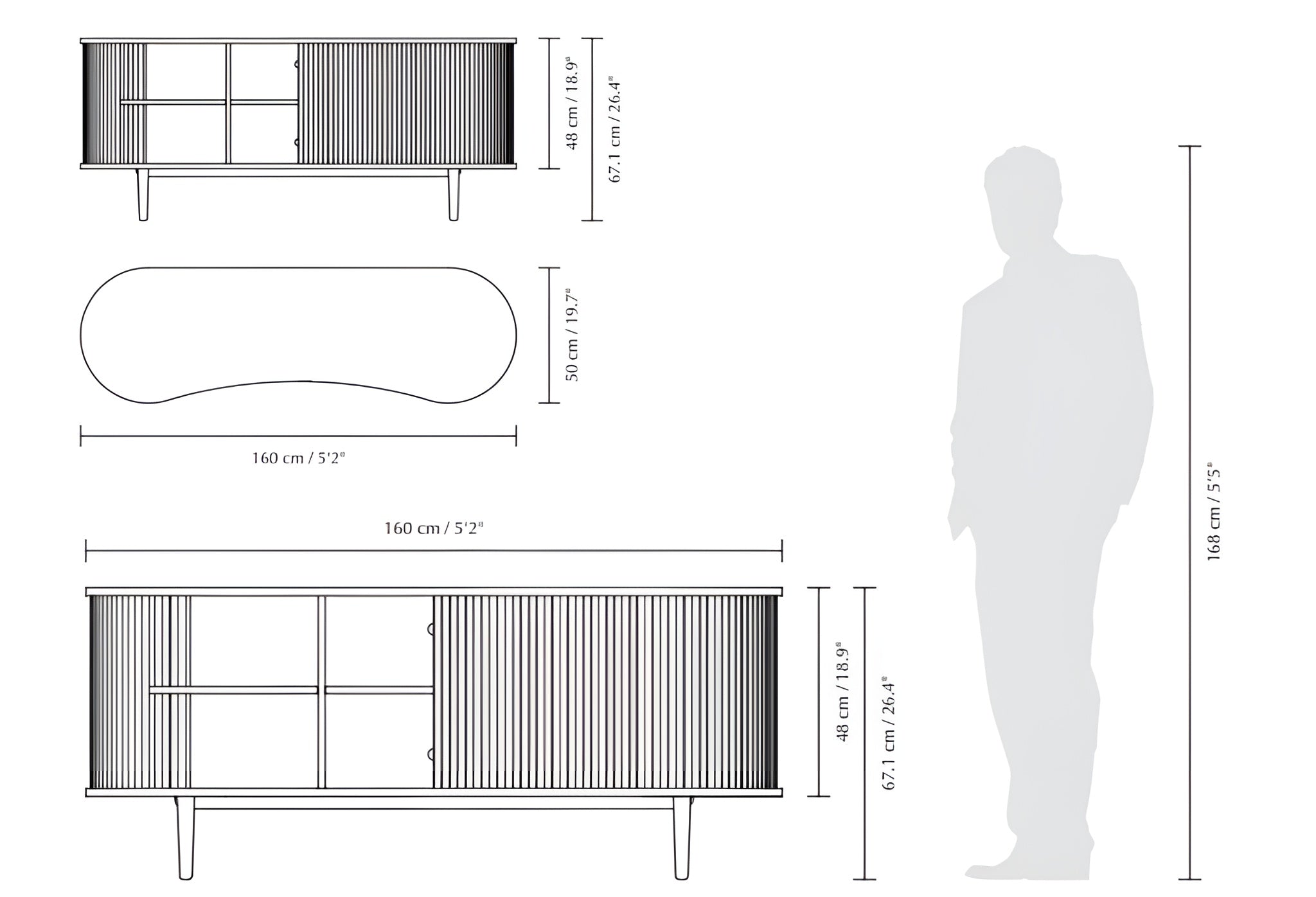 The distinctive tambour sliding doors made of fabric not only catch the eye but also give the furniture a subtle, luxurious expression. Adjustable shelves and discreetly hidden openings in the back panel allow for the storage of audio-visual equipment without disrupting the aesthetic of the interior. Moreover, the tambour doors can be easily replaced, giving the chest of drawers a new look without the need to replace the entire piece of furniture - an environmentally friendly and durable solution.