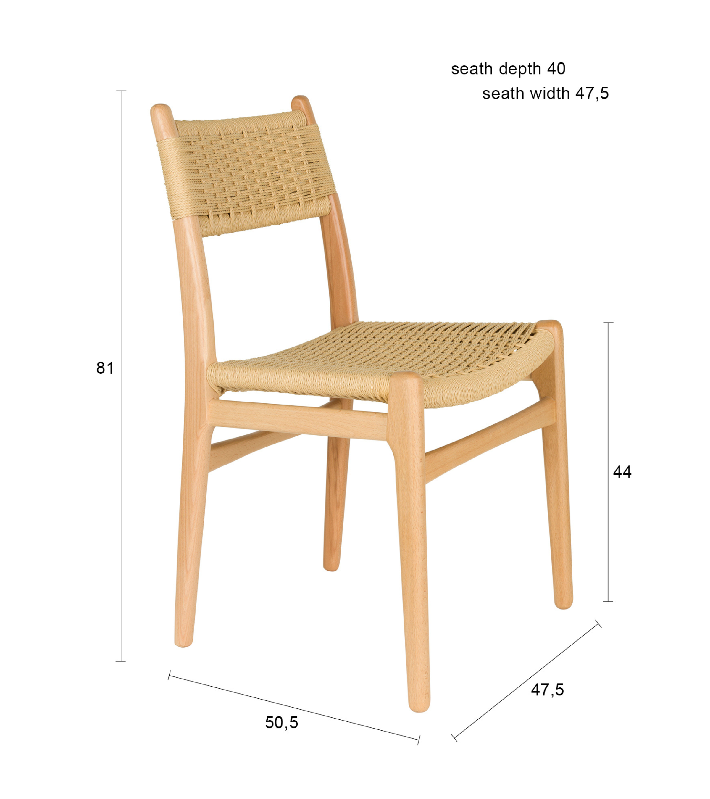 Chair Cecile is a tribute to timeless design and simplicity inspired by Scandinavian and Japandi styles. With natural materials and a hand-woven seat made of paper cord, this piece brings coziness, authenticity, and visual lightness to the interior. The slender beech wood construction ensures stability and durability, while the subtle beige hue beautifully complements bright, natural arrangements.