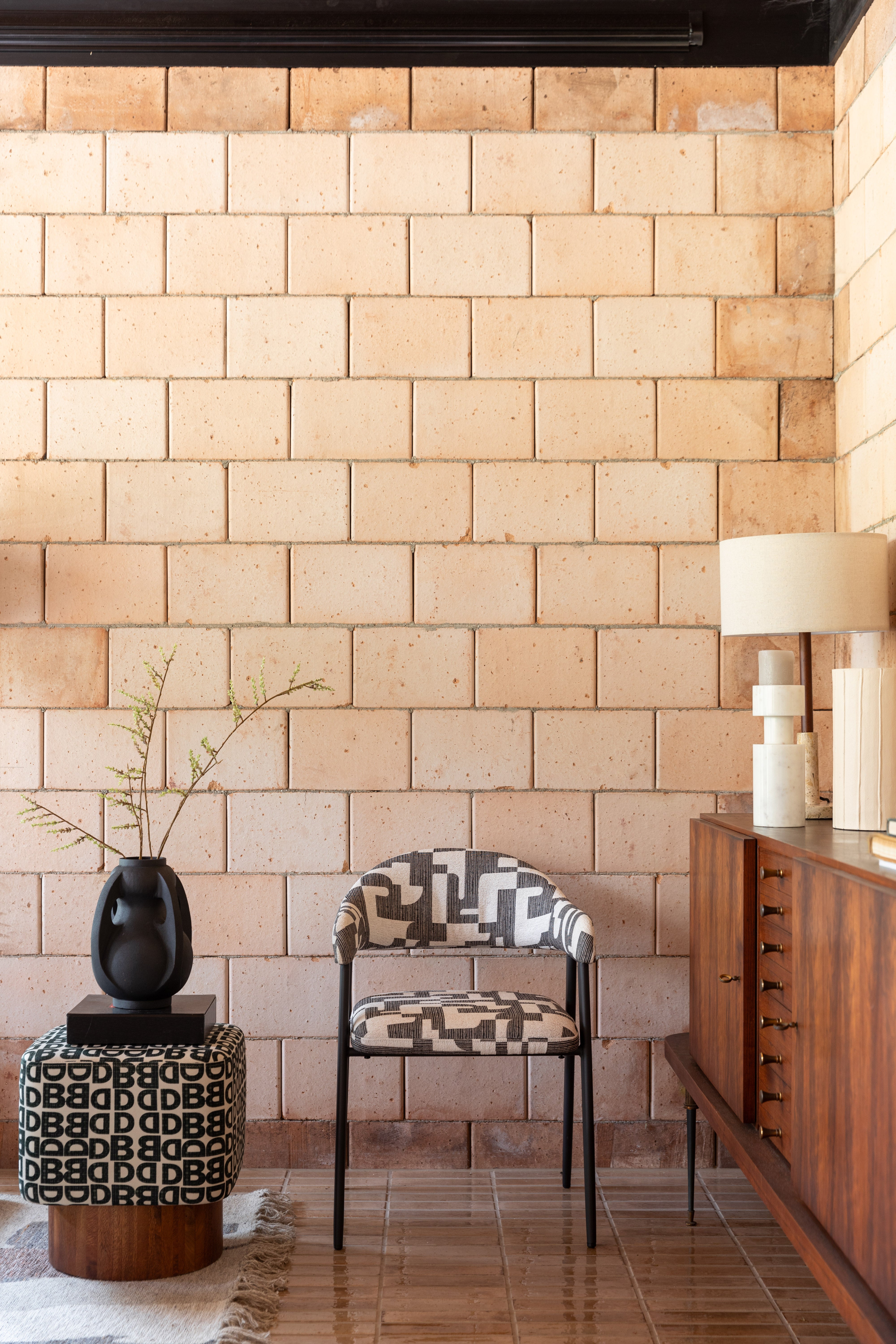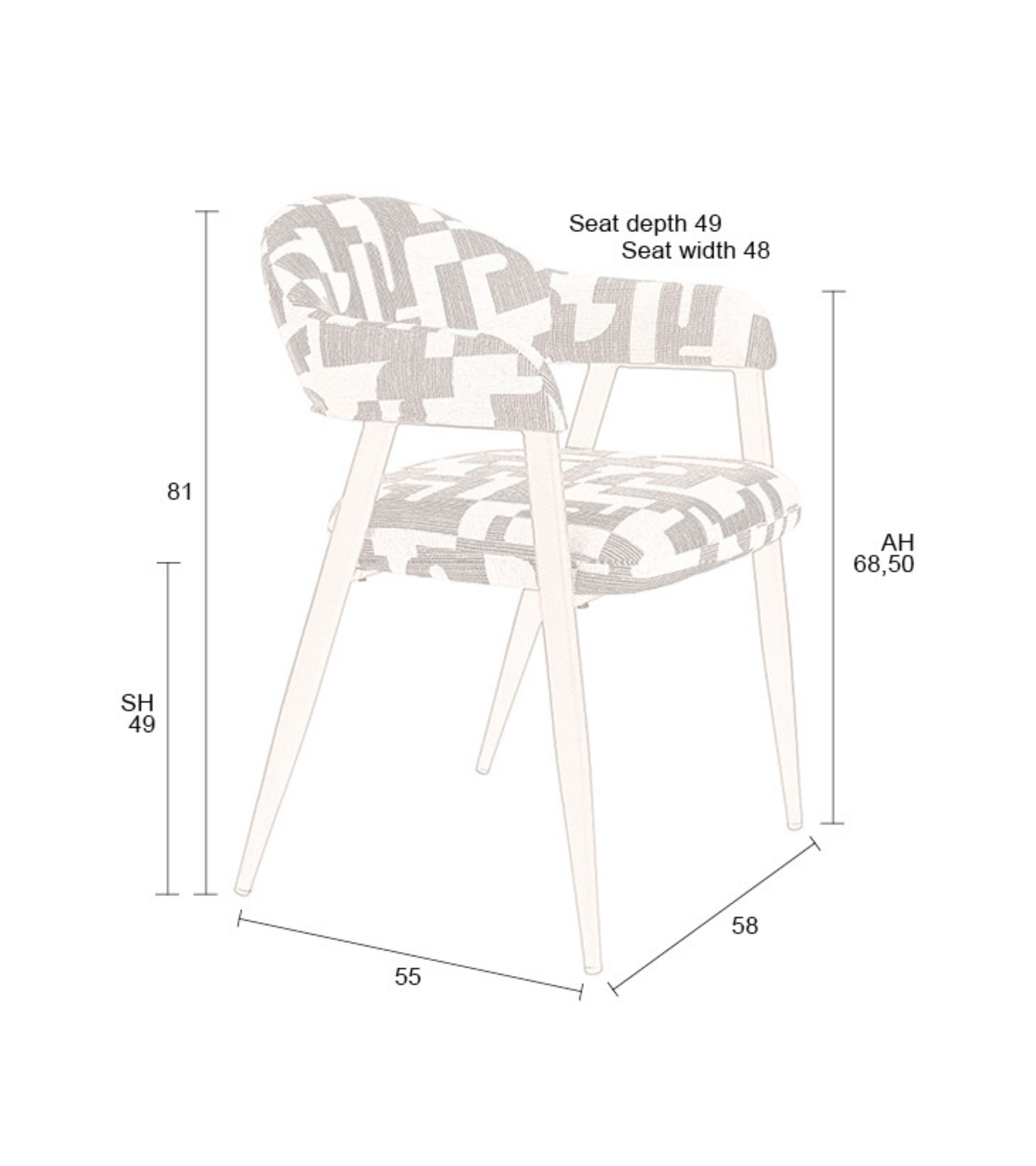 Chair Miyo is the perfect combination of comfort and striking design. With its soft seat, backrest, and armrests, it provides comfort even during long gatherings at the table – whether it's a family dinner, an evening with friends, or a quiet morning coffee. The upholstery featuring graphic patterns draws attention, giving the chair a unique character and subtly referencing vintage style.