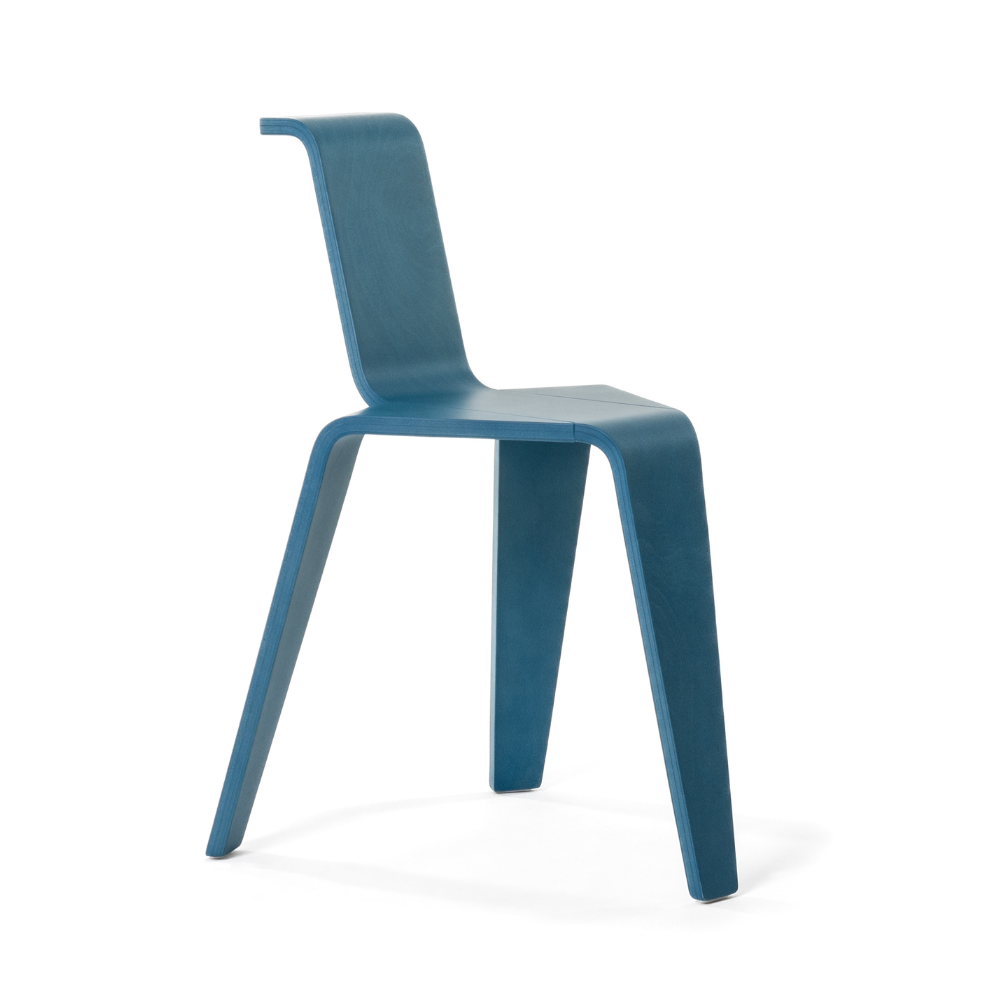 Chair Aka is a design by Konstantin Grcic from 2022 that redefines the classic seating form in the spirit of modern minimalism. Made entirely of aniline-dyed beech plywood, it is available in a natural finish or stained black and blue. With its precisely shaped lines and compact form, the piece achieves a unique visual lightness and stability.