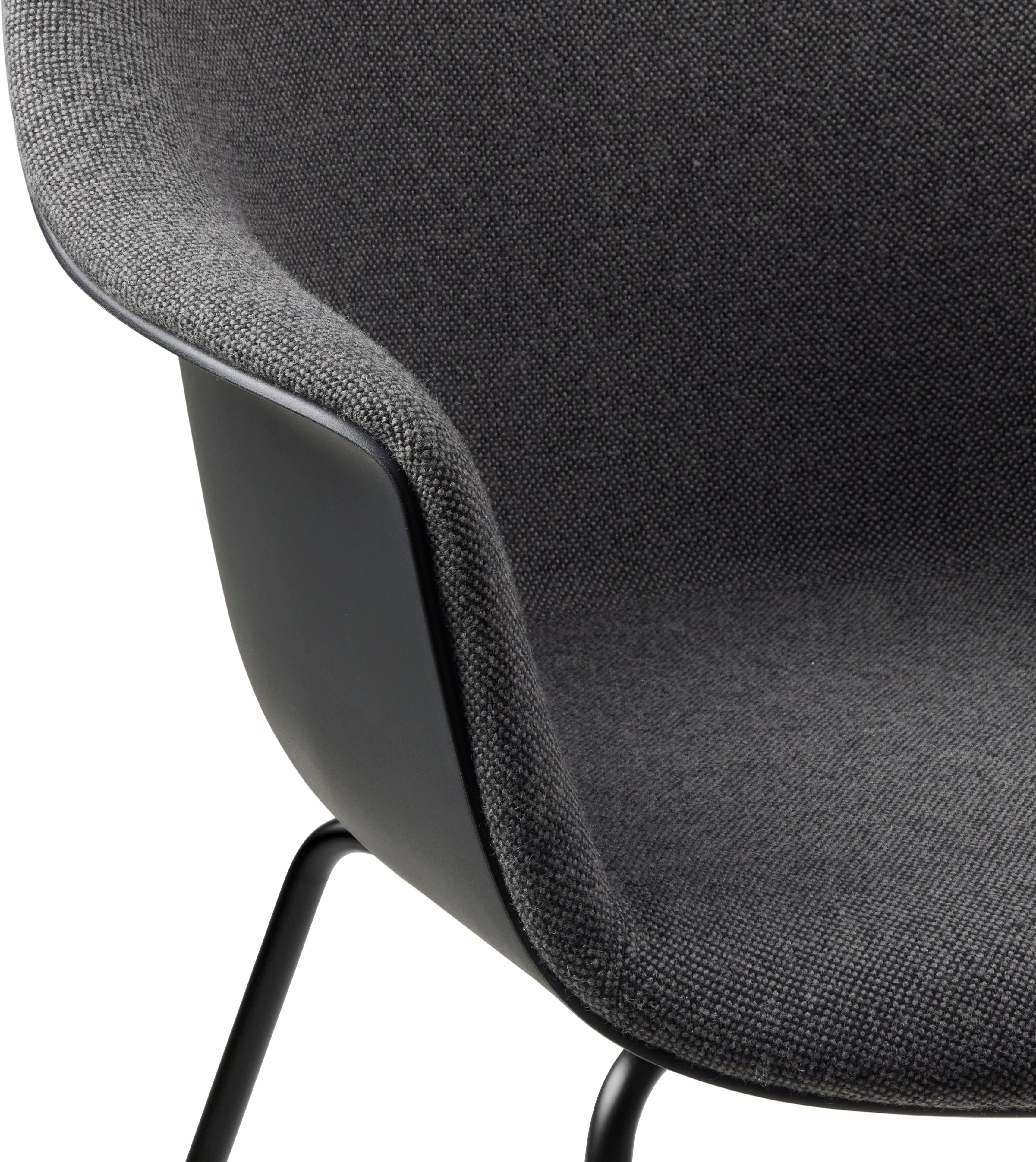 BAT chair in dark gray with a metal base