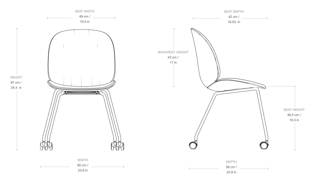 The new generation of upholstery highlights the plush texture and visible softness of the form, referencing the aesthetics of the 1970s. The office chair Beetle Soft on four legs with swivel wheels perfectly meets the demands of a modern workspace at home, in the office, or in hybrid spaces. It is an excellent combination of ergonomics, aesthetics, and durability, designed with everyday comfort in mind.