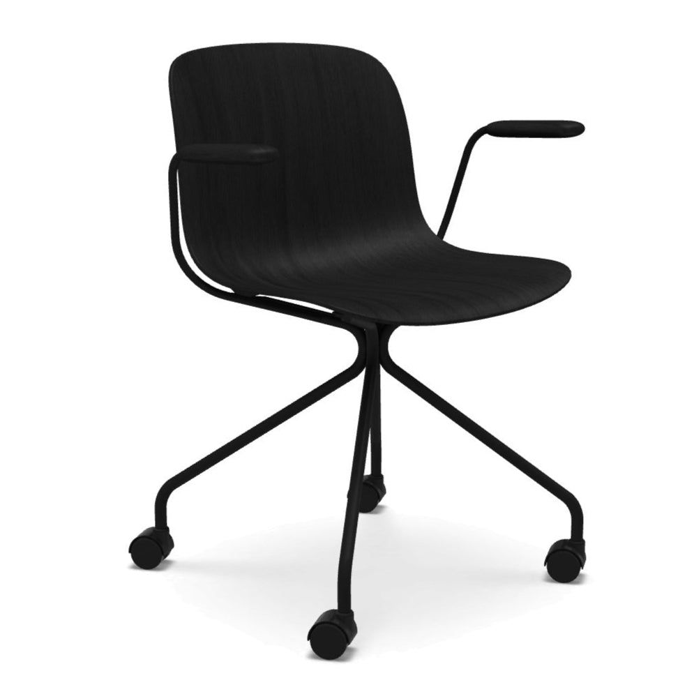 Office chair Troy is a functional and stylish proposal by Marcel Wanders, designed with modern workspaces in mind. Equipped with a 4-legged base on wheels, it provides freedom of movement and ease of use. The frame is made of powder-coated steel, and the seat is available in a version made of polypropylene or natural beech plywood.