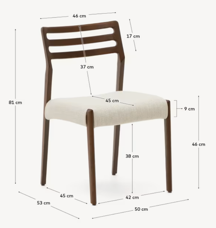CUDIA chair in beige chenille with a dark oak base