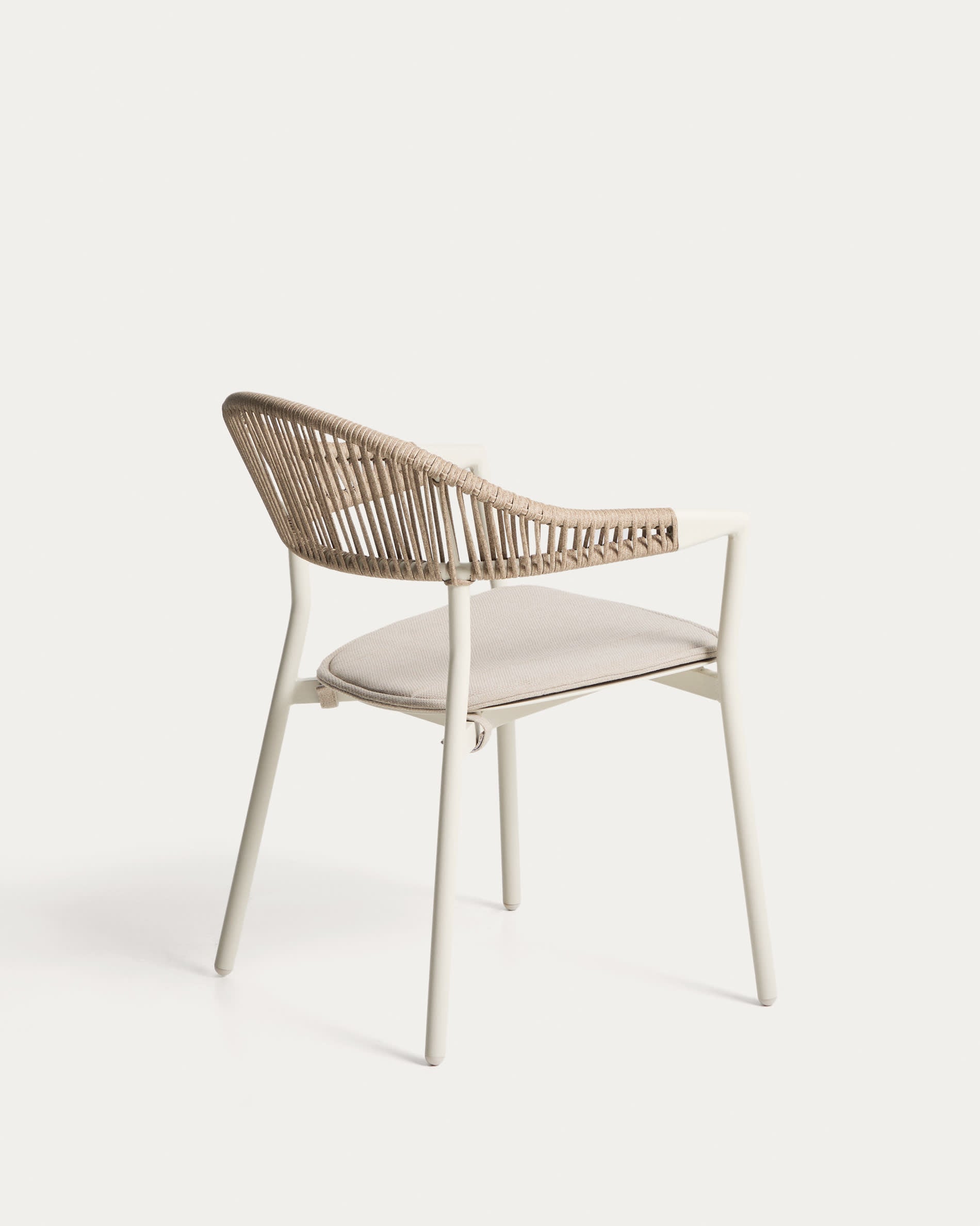 The Alimia outdoor chair is a stylish and functional solution for outdoor and semi-open spaces such as terraces, balconies, or gardens. Its lightweight yet sturdy aluminum construction is resistant to rust, corrosion, and UV rays, making it ideal for everyday outdoor use. The hand-woven synthetic wicker backrest adds an elegant touch and introduces a pleasant texture that enhances the aesthetic of any garden or terrace arrangement.