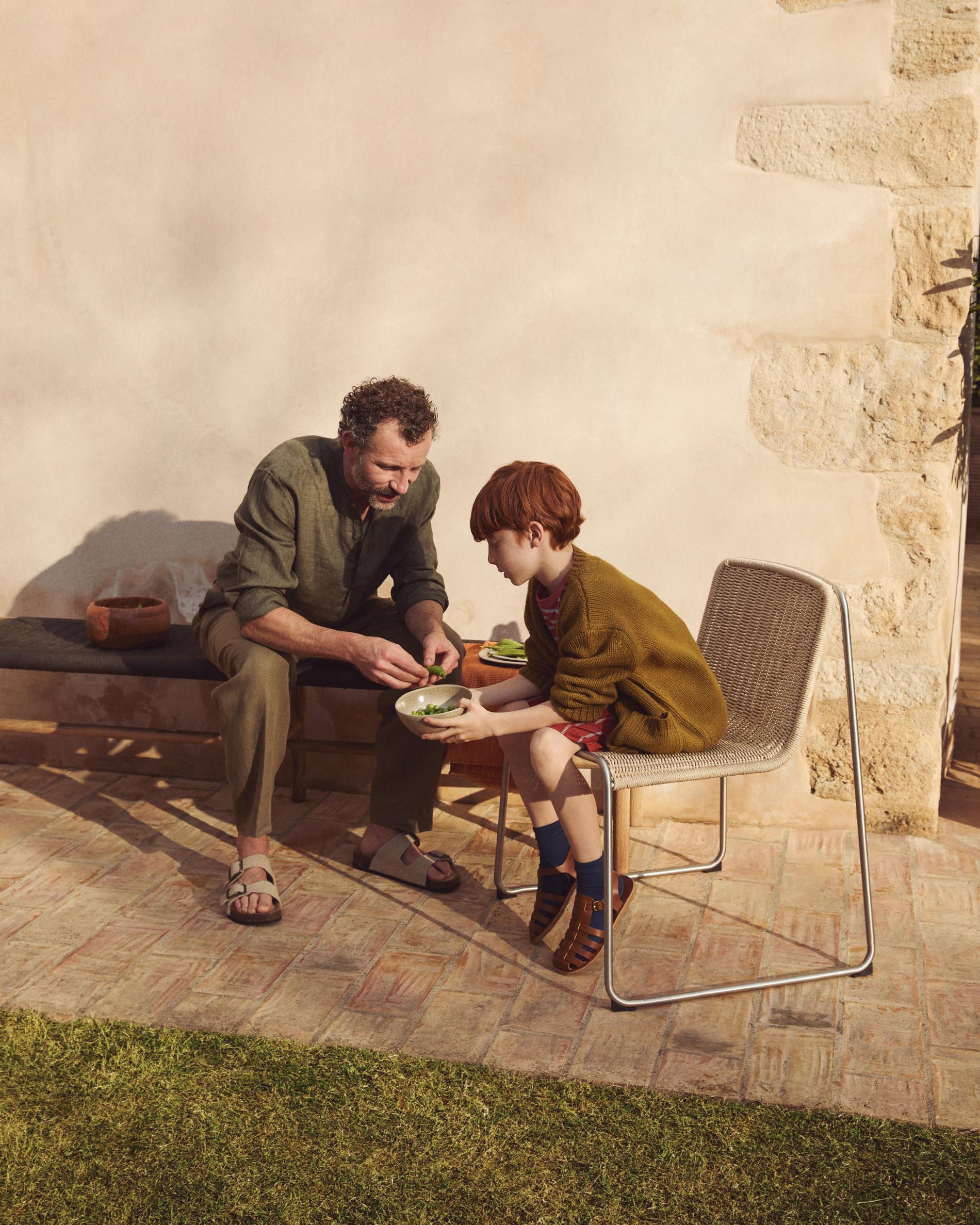 The Tavari garden chair is an excellent blend of elegance, functionality, and durability, designed for outdoor use year-round. Its steel construction provides stability, while the brushed finish of AISI 304 stainless steel, rich in nickel and chrome, ensures exceptional resistance to corrosion and oxidation. The seat and backrest are hand-woven with beige synthetic rope, resistant to UV radiation, rain, and temperature changes. This material not only retains its shape and color but also offers additional comfort during use.