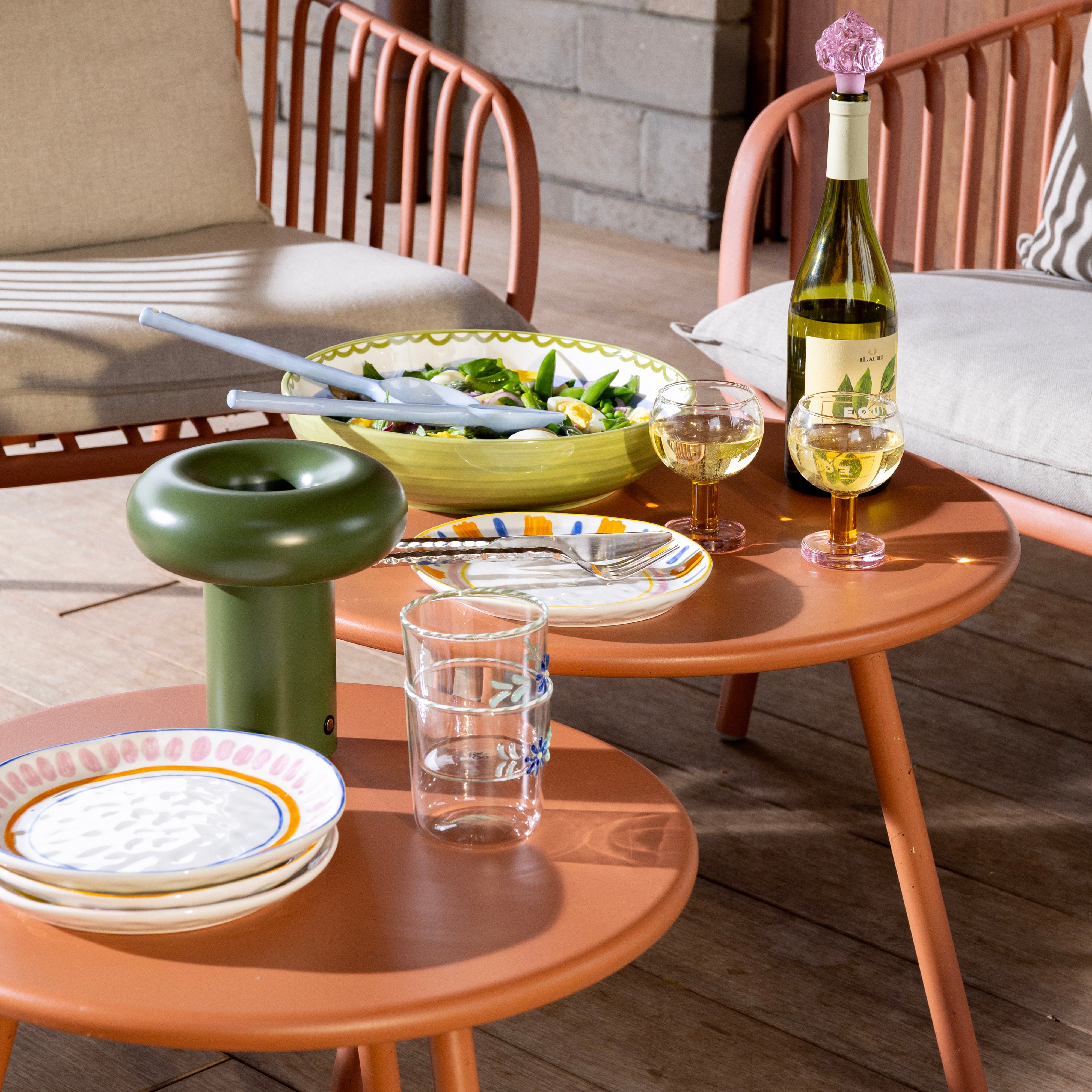 Portable Lamp Glimpse is a perfect way to add warm light wherever you need it. Inspired by the round shape of a doughnut, the lamp emits a gentle, warm glow that brightens your table. With dimming, adjustment, and charging features, it is incredibly practical and easy to carry, both indoors and in the garden.