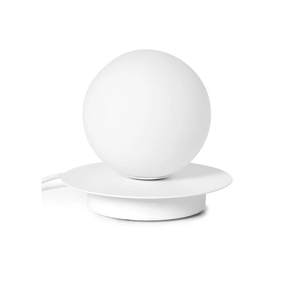 Borra lamp is a small yet striking fixture that brings a touch of luxury and subtle elegance to your interior. Its spherical shade set on a geometric base captures attention with its simple yet impressive form. This compact lamp is perfect for a nightstand, desk, or dresser, providing not only functional light but also a refined decorative detail.