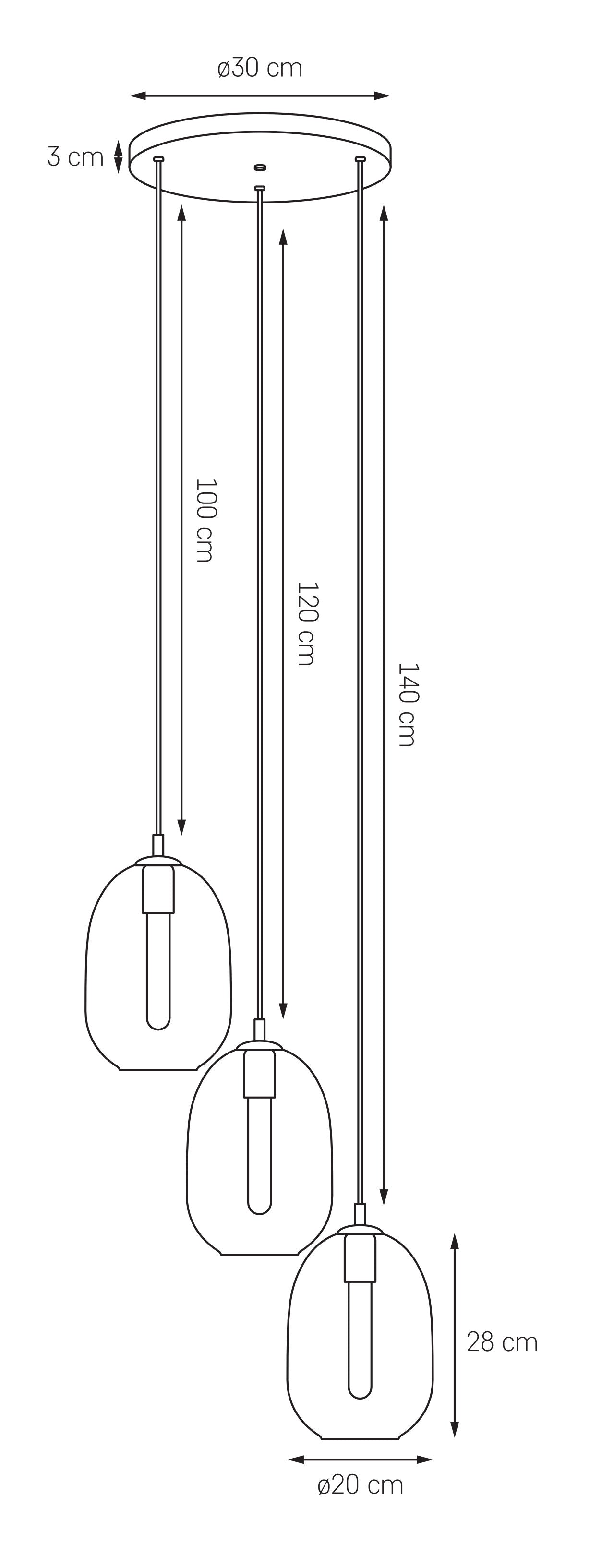 The lamp is equipped with three shades with a diameter of 20 cm and a height of 28 cm, which – thanks to the different suspension lengths – create an impressive, spatial composition. The lighting not only decorates but also sets the mood, subtly diffusing light and introducing a cozy atmosphere into the interior.
