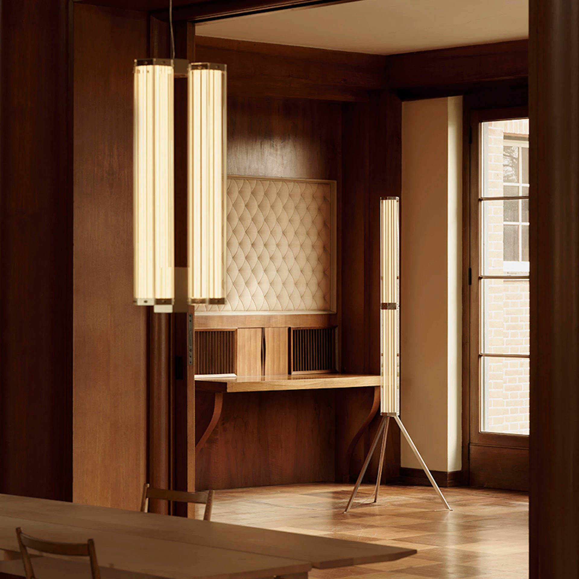 SuperWire Pendant Light redefines the concept of modern decorative lighting. Its modular design and luminous form make the light not just a source of illumination, but also a sculptural element within the interior. With its warm, uniform light emitted across the entire surface of the glass, it creates a cozy atmosphere in the living room, representative space, or study. The transparent glass and precise details give it a sense of lightness while emphasizing the architectural character of the design.