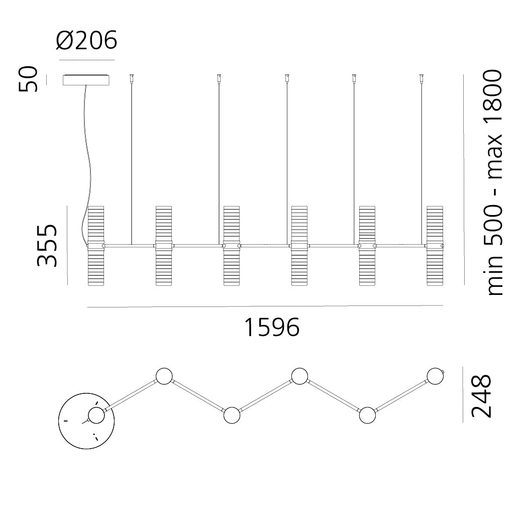 ZEPHYR LINEAR pendant lamp transparent with brown finish